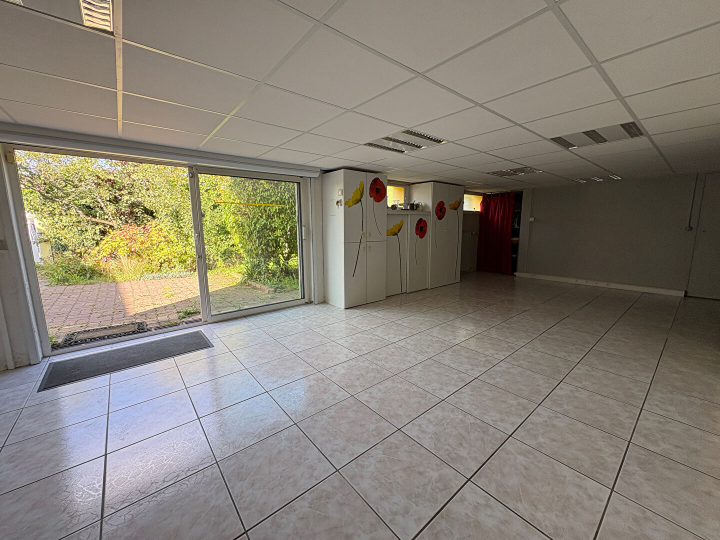 Chambre d'appoint, salle d'eau, grande pièce de 35 m² (salle de jeux, bureau, home cinéma?), cave et chaufferie.