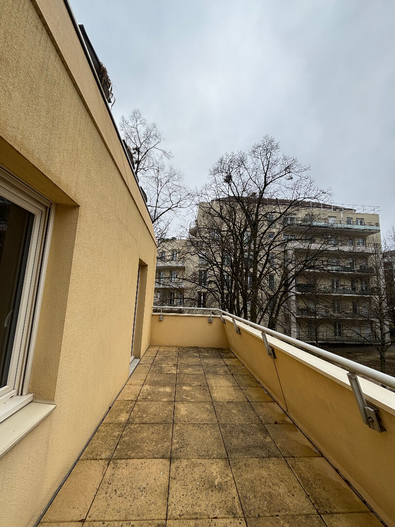 Au premier étage avec ascenseur, appartement loué nu comprenant : une entrée, un séjour avec placards et balcon, une cuisine semi-ouverte, deux chambres dont une donnant accès à une terrasse de 14 m2, WC, salle de bain.