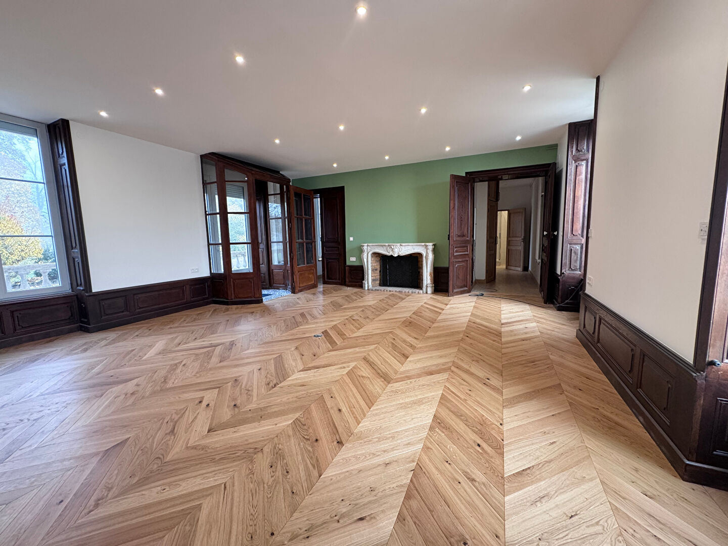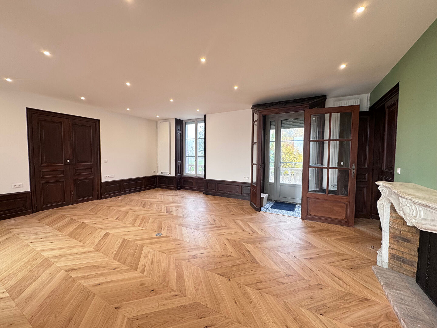 Dans très beau cadre, rénovation complète pour ce bel appartement plein de charme de plus de 90 m² : hauts plafonds, moulures, cheminée, parquets en chevron, boiseries, etc.