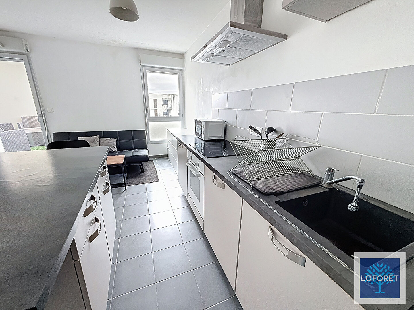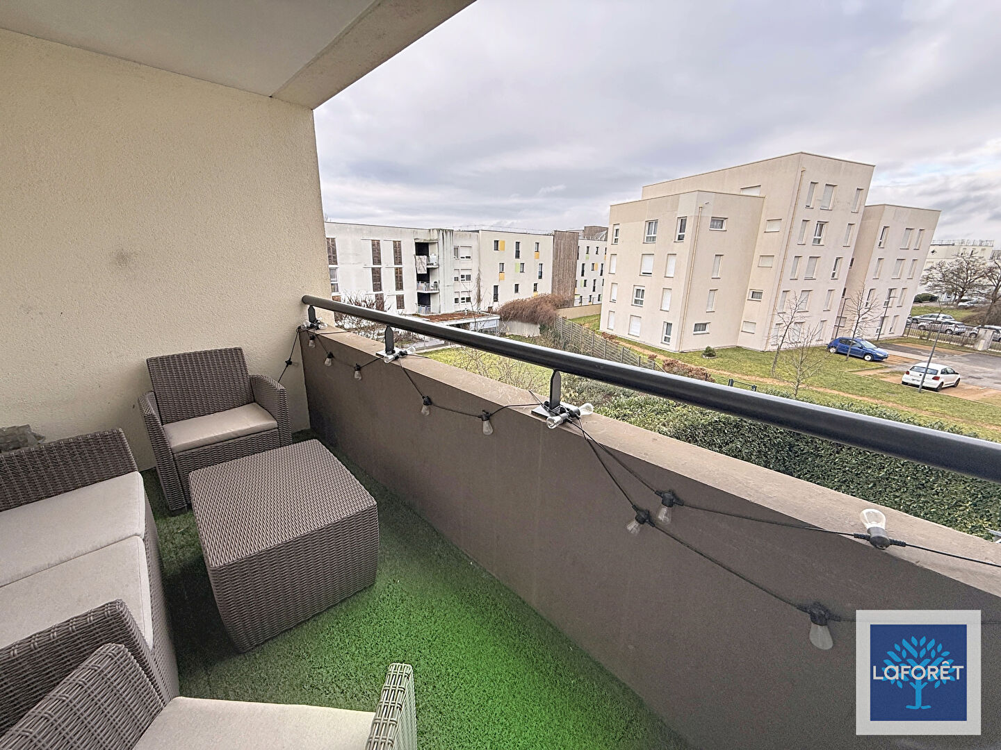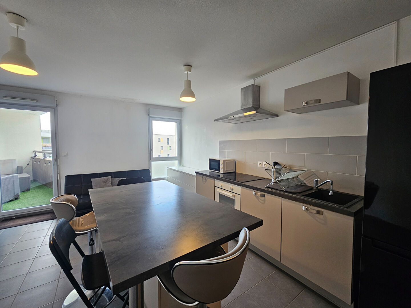 Appartement type 2 de 42.91m² , vendu meublé, comprenant une entrée, une pièce de vie avec cuisine équipée, un balcon donnant sur des espaces verts, une chambre avec rangements, une salle de bain et un wc séparé.
