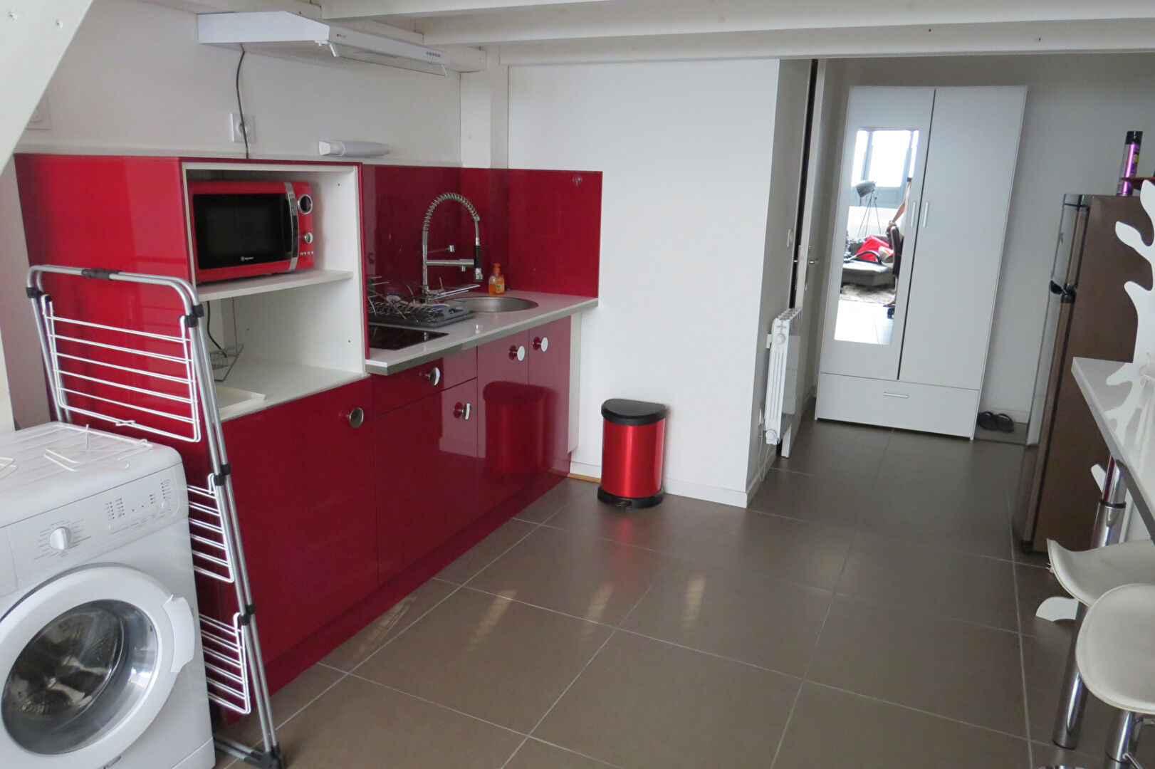 T1 bis vendu loué ( bail meublé) dans petit immeuble ancien. Entrée, cuisine aménagée et équipée ouverte sur pièce de vie, couchage en mezzanine. Appartement en bon état, lumineux , à proximité immédiate des transports ( bus et tram) et commerces.