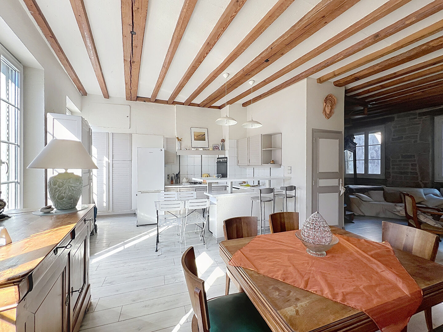 Au coeur du centre-ville historique de Dijon,beau T4/T5 en duplex ( surface au sol = 129.58 m2) au dernier étage d'un bel immeuble ancien. Grande pièce de vie baignée de lumière grâce à son exposition est-ouest, cuisine aménagée, ouverte , 2 chambres avec placards , salle de bains , 3ème chambre sous combles. 2 caves. Appartement traversant et très lumineux . Beaucoup de cachet ( poutres et pierres apparentes). Copropriété très calme, avec faibles charges. Prévoir rafraichissement.
