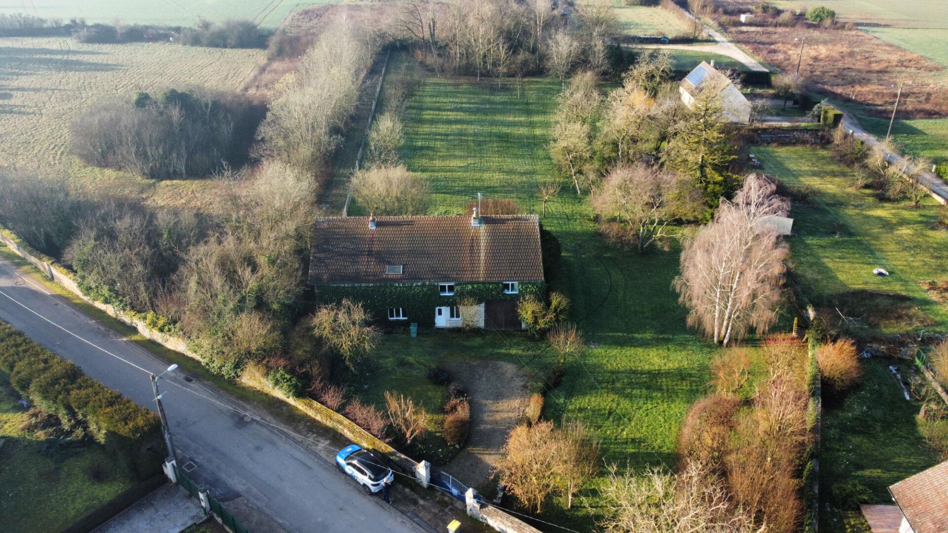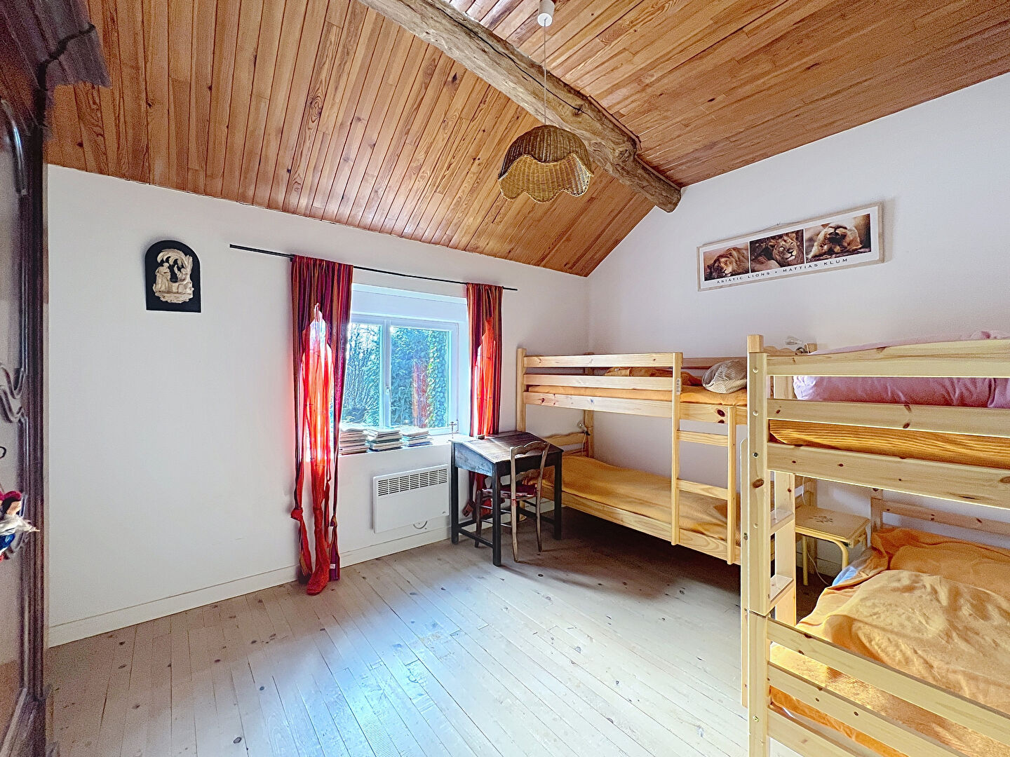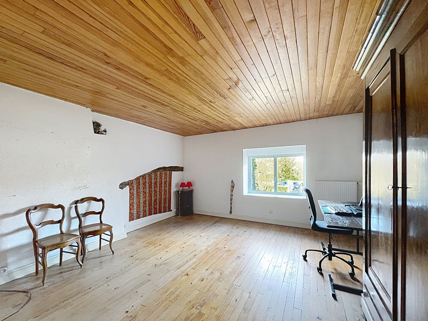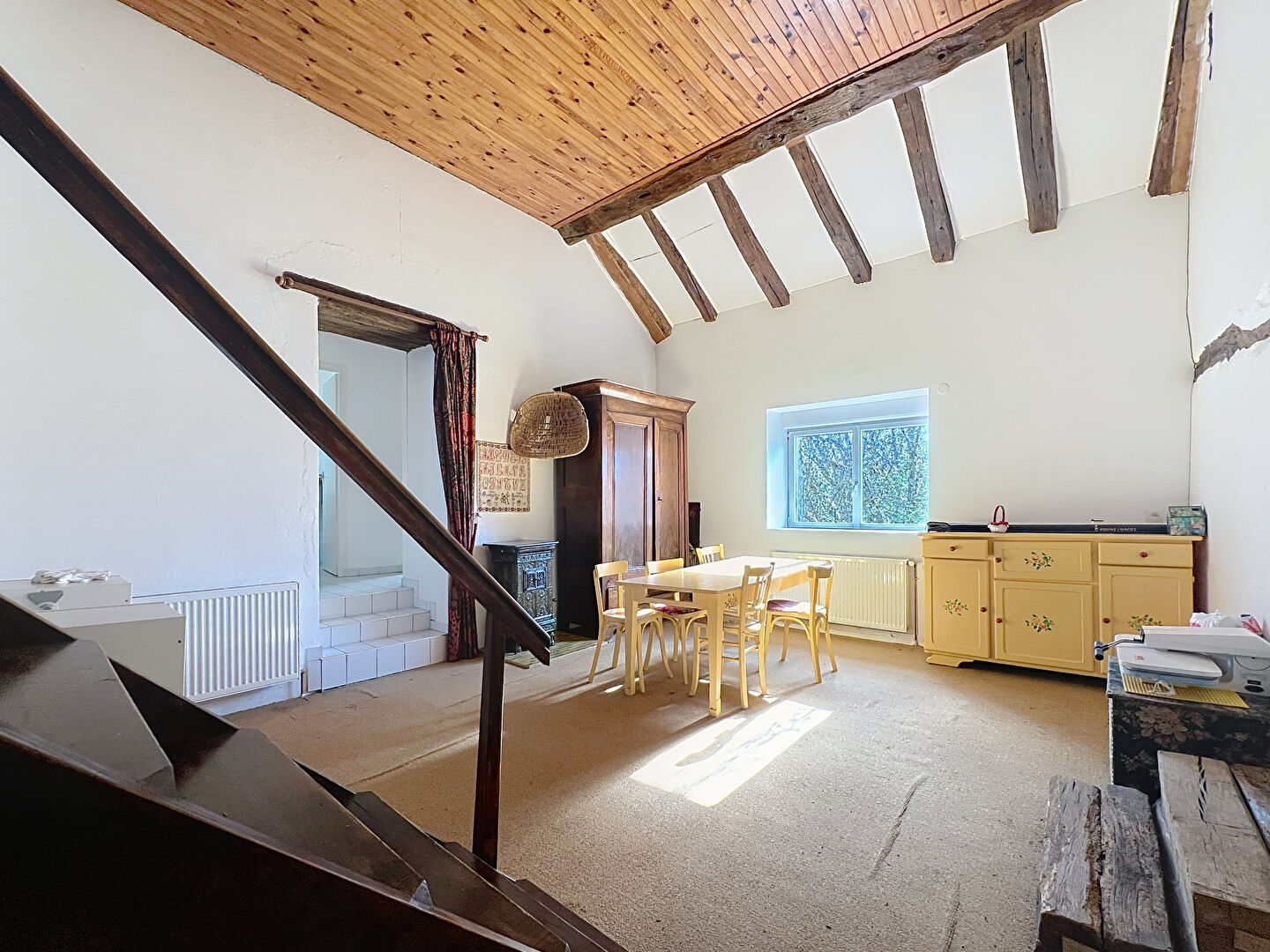 Grande maison ancienne , avec beau et grand terrain , au calme absolu. Cuisine aménagée, belle pièce vie traversante avec cheminée-insert, salon avec bureau en mezzanine, 5 chambres, 2 salles d'eau. Grange attenante ( 33 m2) . Cave, bûcher et grenier. Double-vitrage alu + volets électriques. Chaudière gaz. Terrain clos et arboré, avec petit étang. Prévoir rafraîchissement.