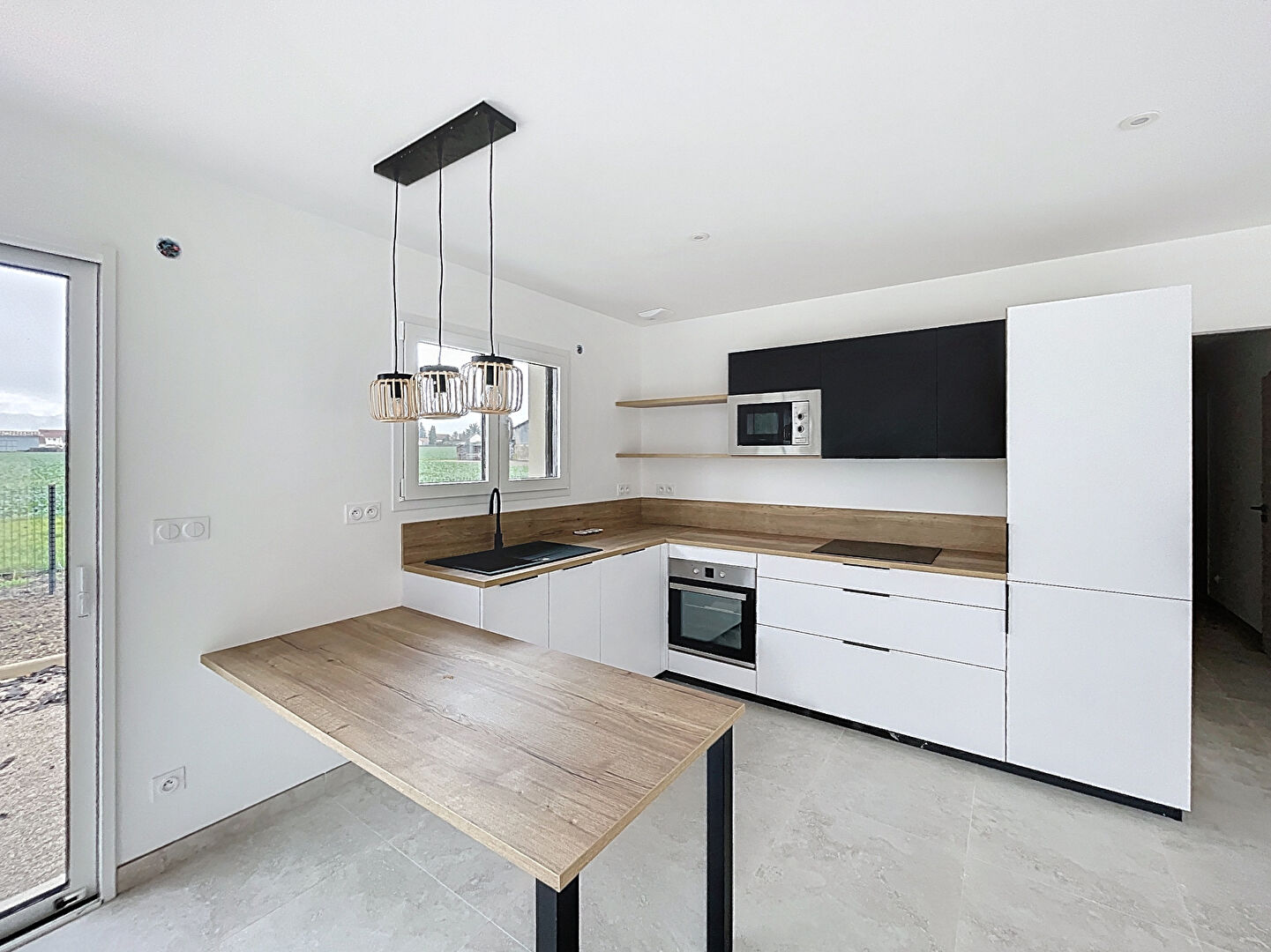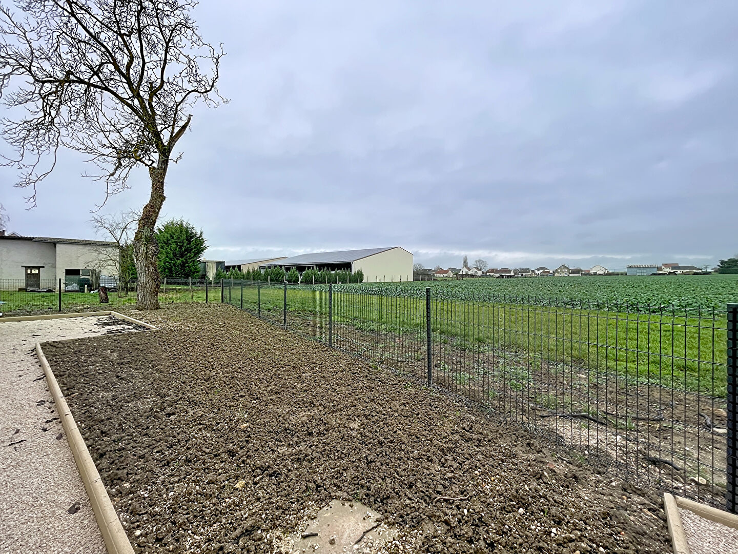 Elle comprend une entrée, pièce à vivre traversante Nord et Sud donnant sur jardin, cuisine ouverte aménagée et équipée, 3 chambres, salle d'eau / salle de bains, wc. Un garage accolé de 23 m² permet de stationner un véhicule et d'avoir une partie buanderie / chaufferie. Le tout sur terrain clos de 399 m² avec vue sur les champs.