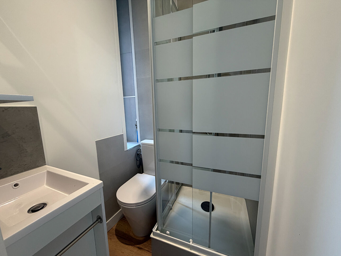 Appartement de type T2 situé au 2e étage d'un immeuble calme, secteur gare. Entièrement refait à neuf, il se compose d'un séjour avec coin cuisine, aménagée et équipée (four, plaque, hotte), d'une chambre séparée ainsi que d'une salle d'eau avec WC.