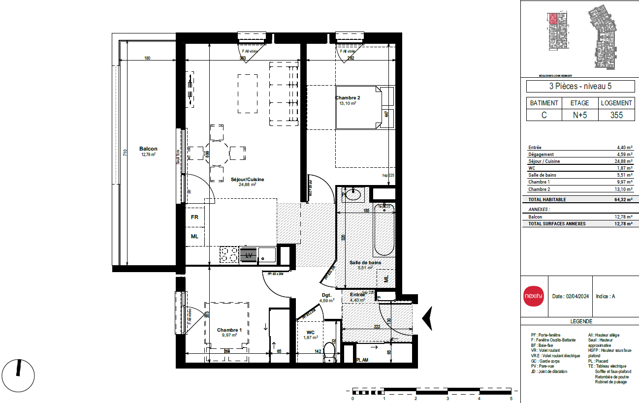 Surface : 64.32 m²