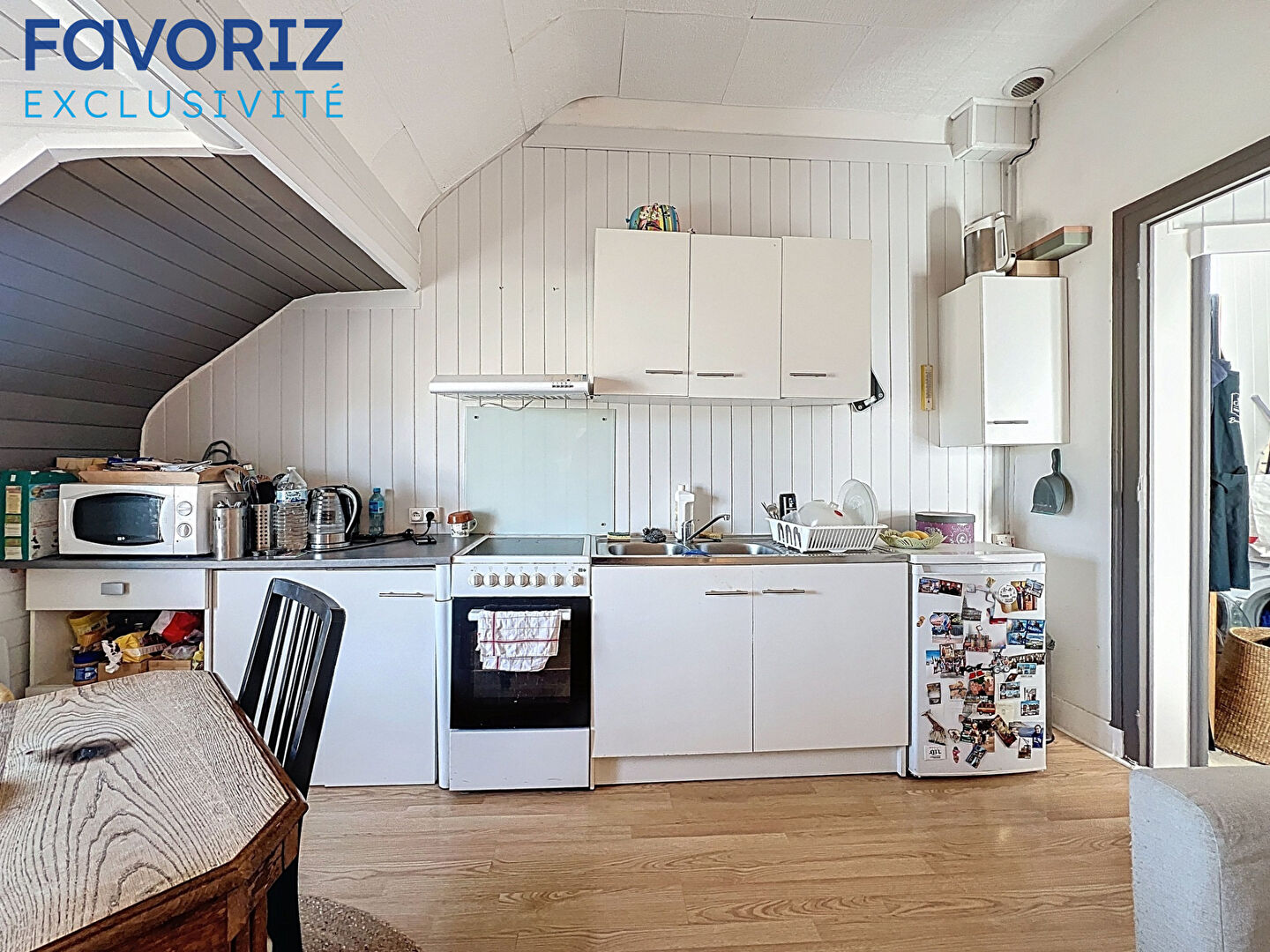 Au 2ème et dernier étage d'une petite copropriété au calme cet appartement comprend : une entrée, une cuisine ouverte sur salon, une grande chambre de 15m², une buanderie avec branchement pour la machine à laver et rangements et une salle d'eau avec WC.