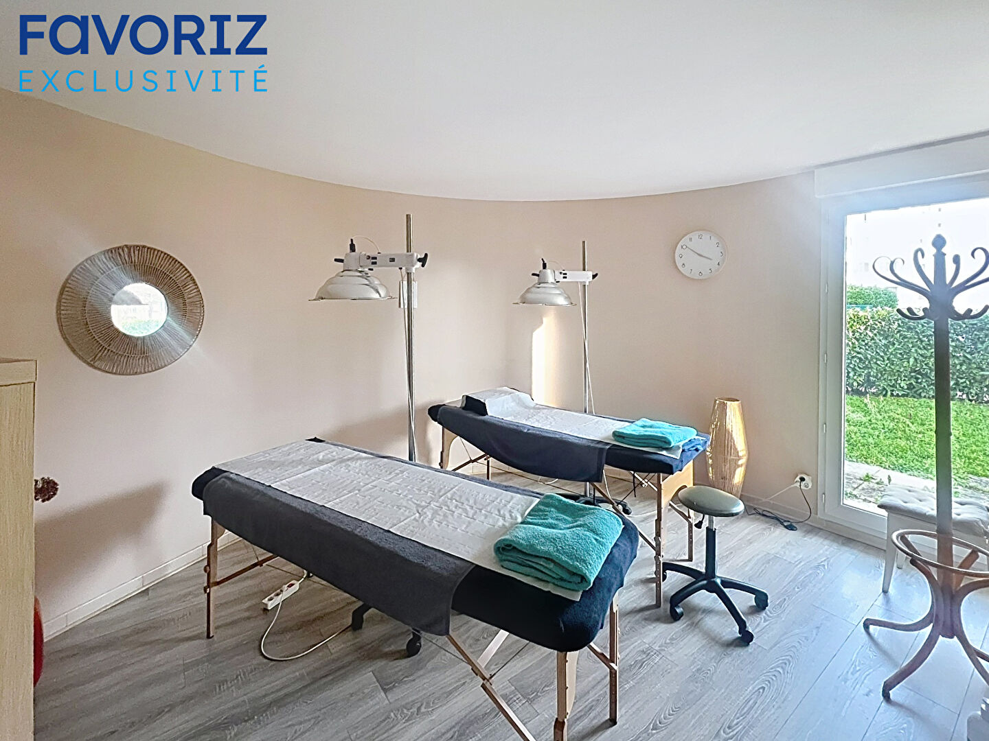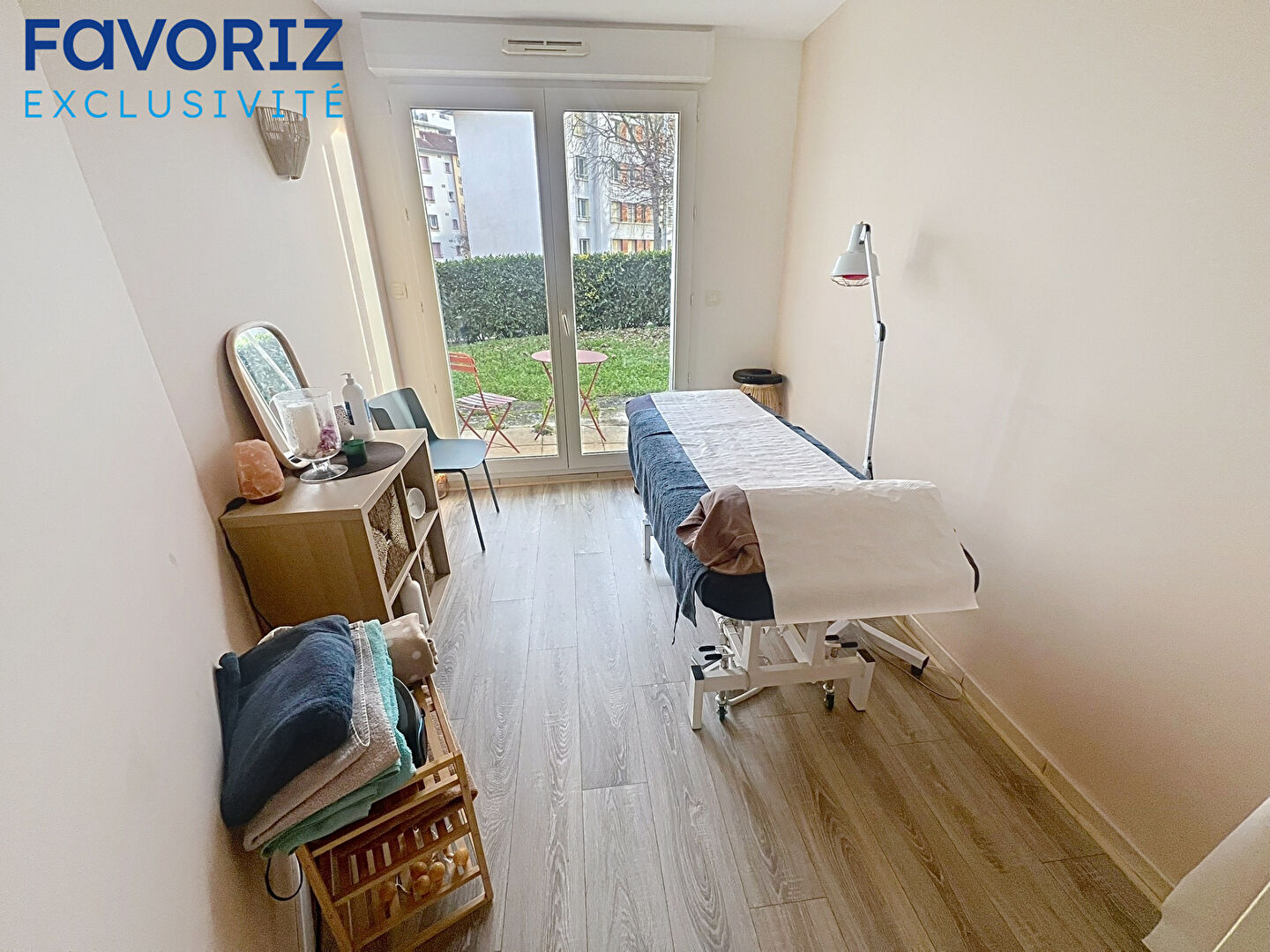Cet appartement comprend, une entrée avec rangement, un grand salon/séjour (actuellement transformé en salle de kinésithérapie) donnant sur un jardin avec terrasse, une cuisine indépendante aménagée et équipée, deux chambres dont une avec son jardin privé, une salle d'eau et W.C séparés.