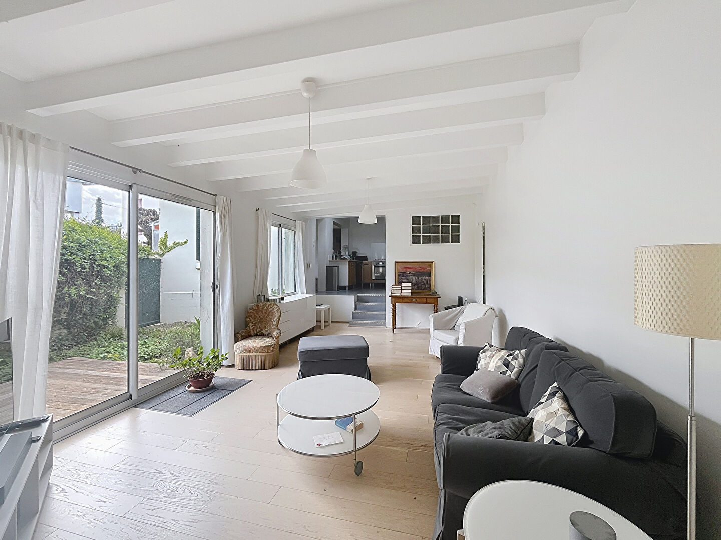 Vous serez séduits par le grand salon lumineux, intégrant un espace bureau, avec un accès direct au terrain clos sur une parcelle de 238m².