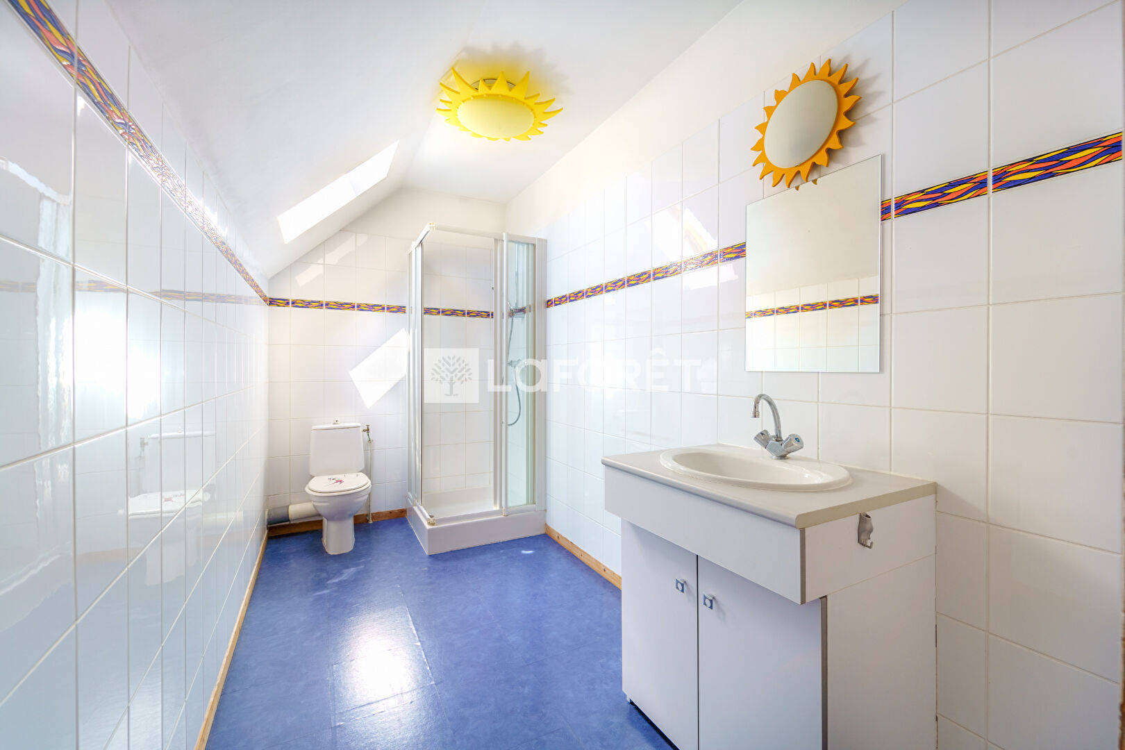 La maison dispose d'une salle de bains principale, d'une salle d'eau avec toilettes, ainsi qu'un WC indépendant, pour un confort optimal au quotidien.