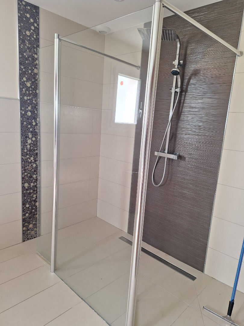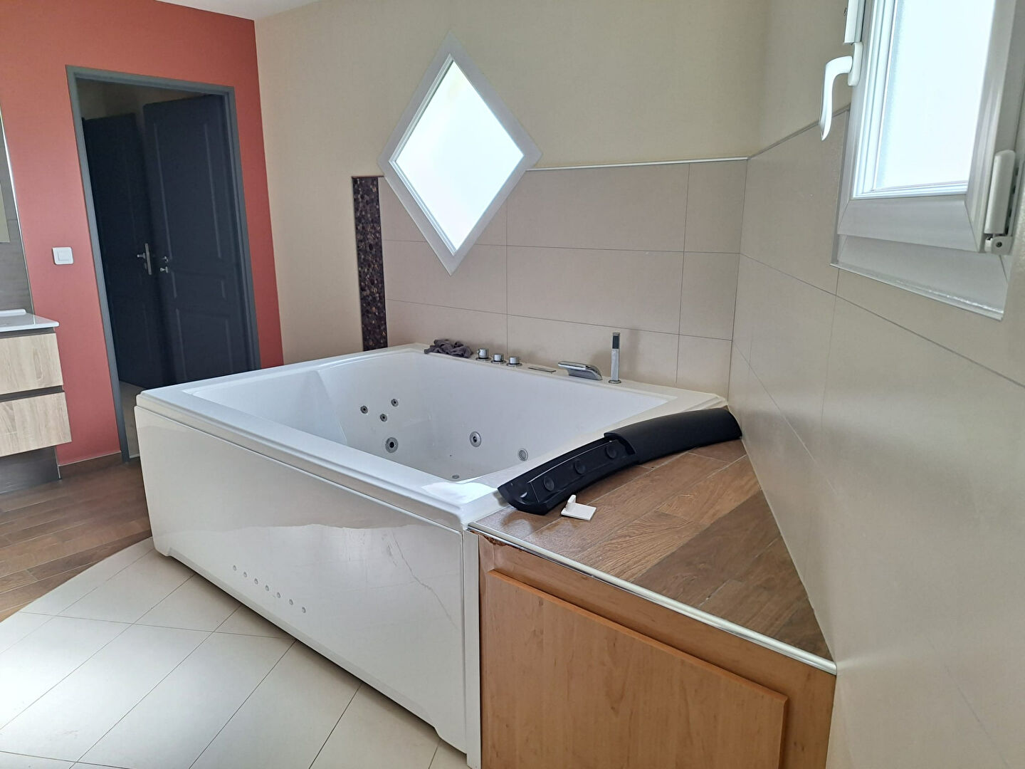 Salle de bain avec baignoire balnéo et douche