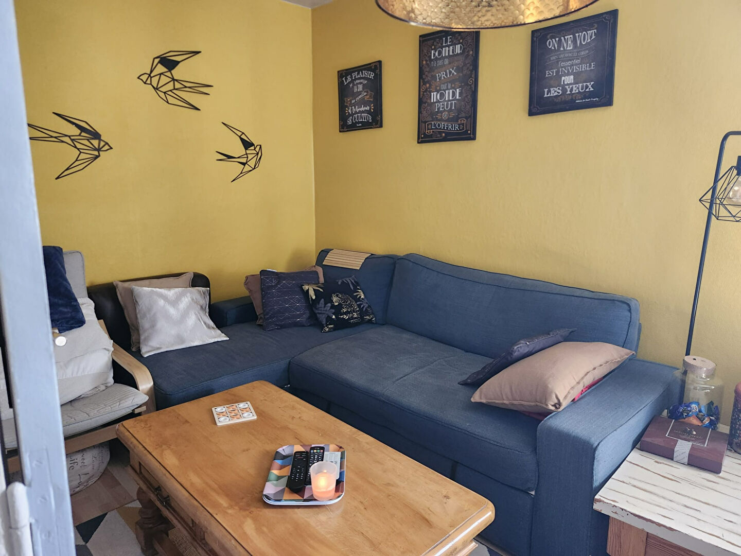 Séjour lumineux avec accès direct au balcon.