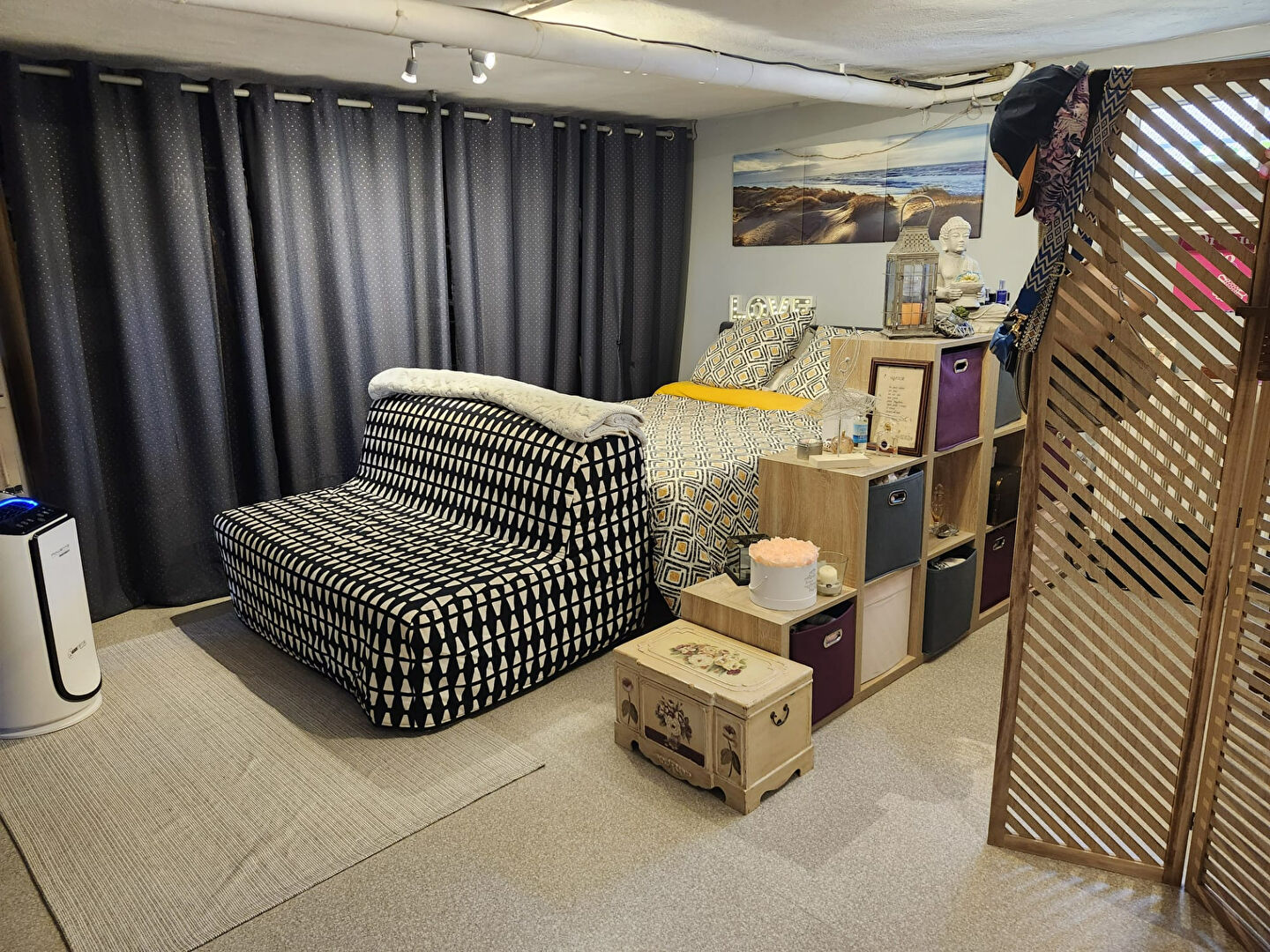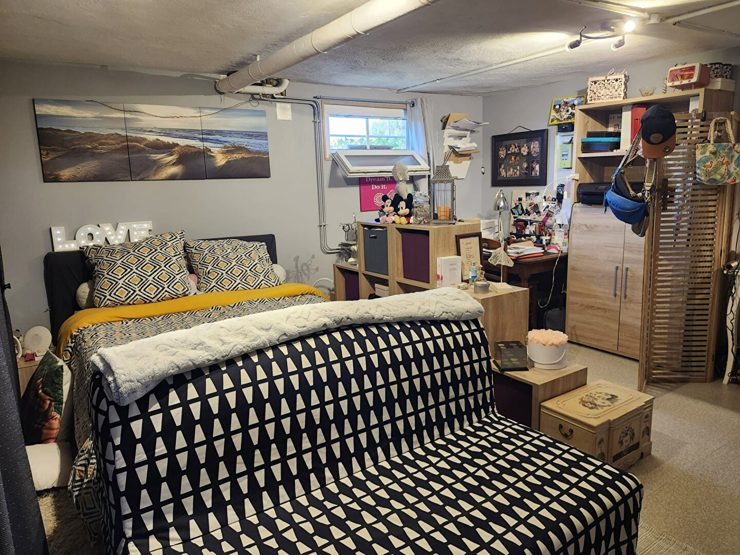 une grande pièce aménagée en chambre parentale