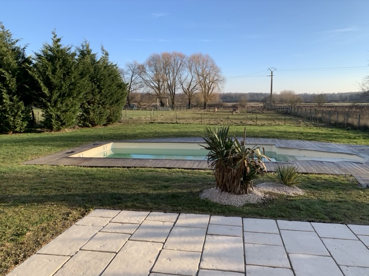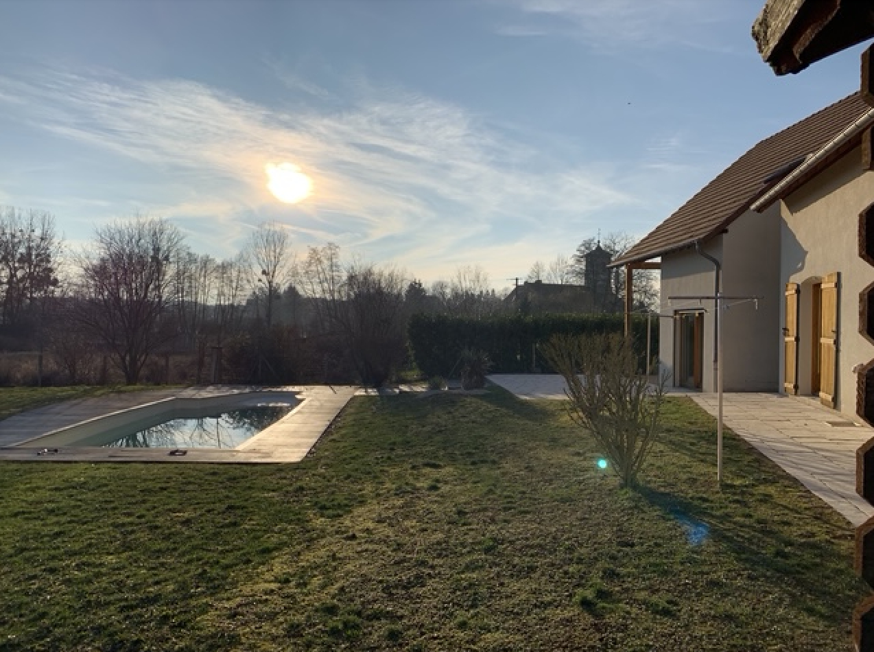 Implanté sur un terrain d environ 1878m², la propriété offre un grand jardin avec piscine et petit chalet de rangement.