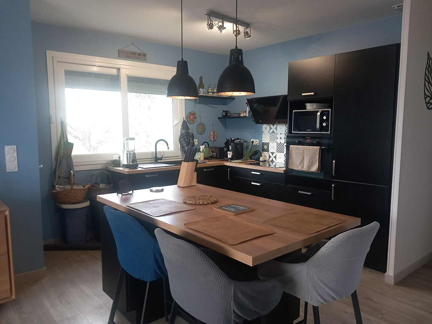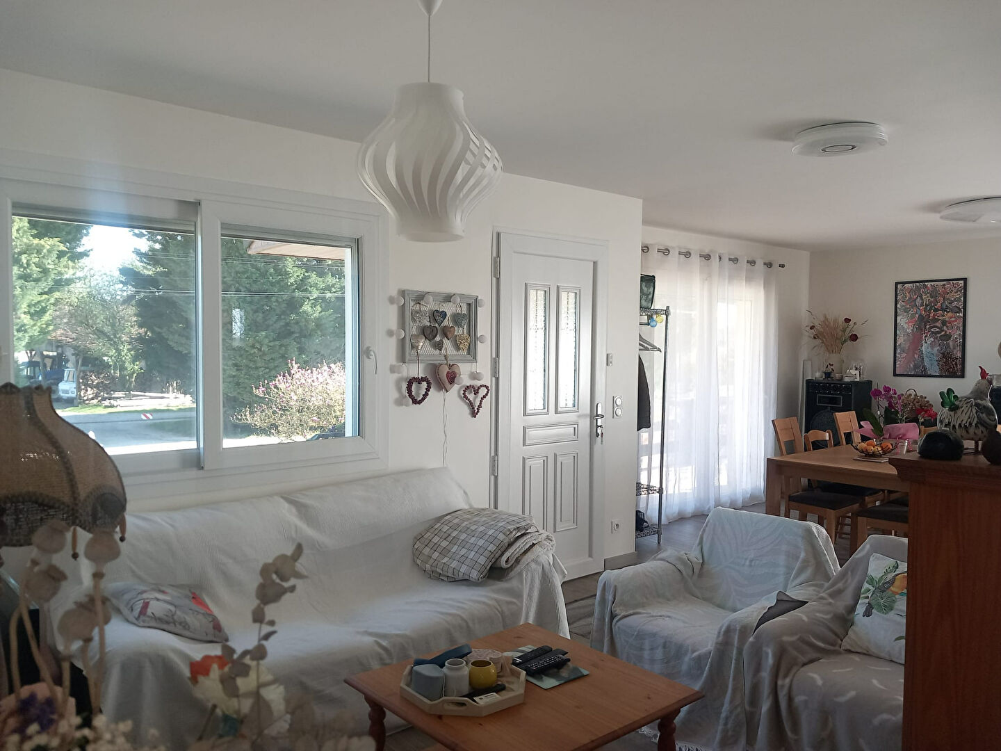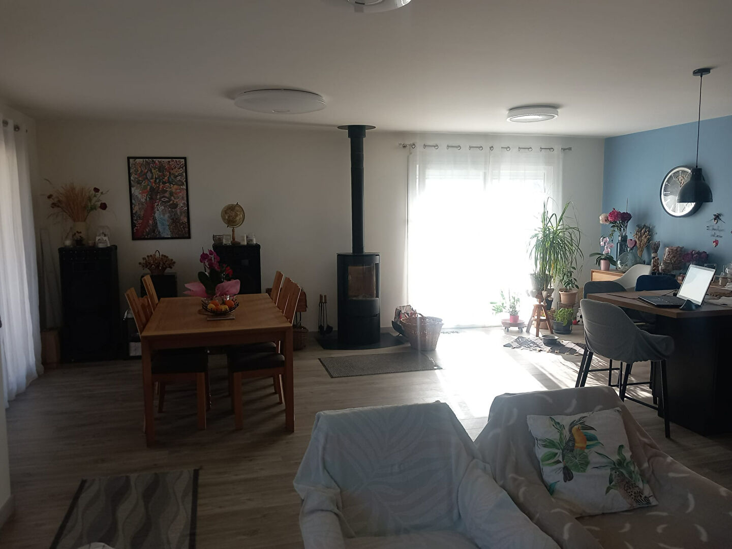 A l'étage, belle pièce de vie, cuisine équipée (plaque induction, lave-vaisselle, réfrigérateur, four, hotte), salon-salle à manger.