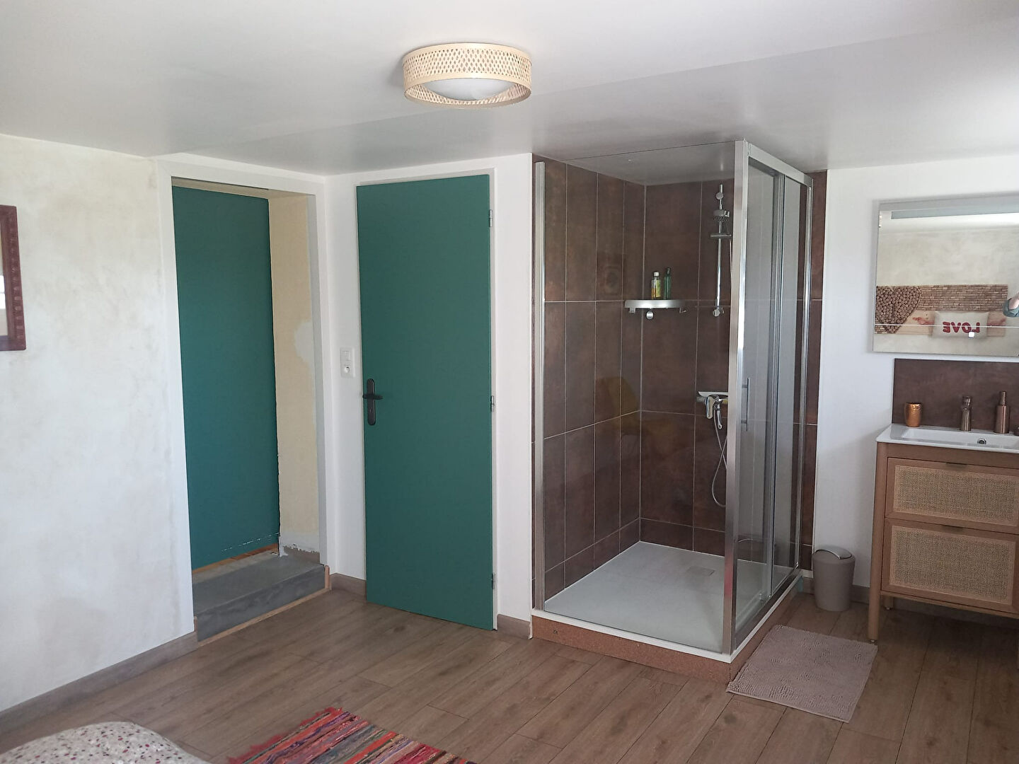 Au sous-sol, non enterré, une belle rénovation propose : une chambre et sa salle d'eau, toilette indépendant, une deuxième chambre pas finalisé, cuisine d'été qui peut recevoir réfrigérateur, congélateur, lave-linge, sèche-linge, cave à vin, garde-manger, etc.