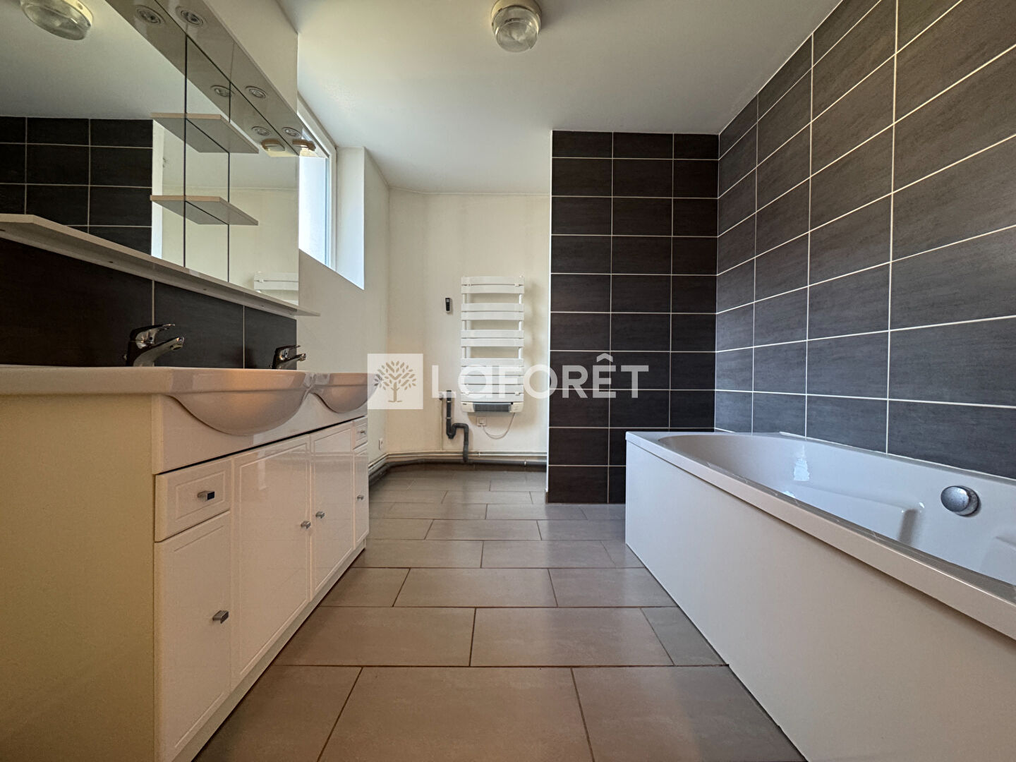 Le 1er étage vous offre une grande salle de bains avec douche, baignoire et WC ainsi que 2 grandes chambres.