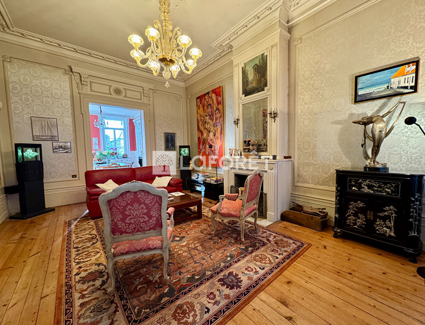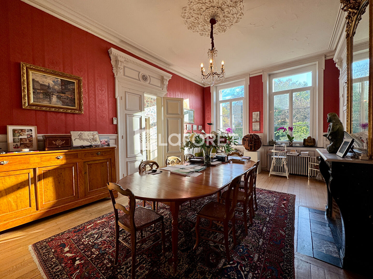 Ce bien ayant conservé son charme et son cachet avec ses moulures, ses hauts plafonds, ses cheminées et son très bel et large escalier sauront vous séduire.