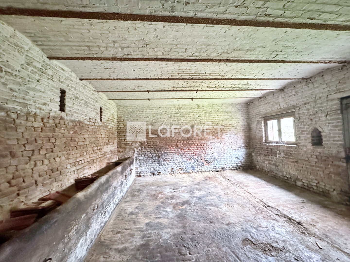 Implantée sur une parcelle d'environ 1 000 m², la propriété se compose d'une maison d'habitation développant actuellement 106 m², ainsi que d'une vaste dépendance attenante de type ancienne étable. L'ensemble permet d'envisager une extension ou un réaménagement portant la surface totale à plus de 160 m² habitables.