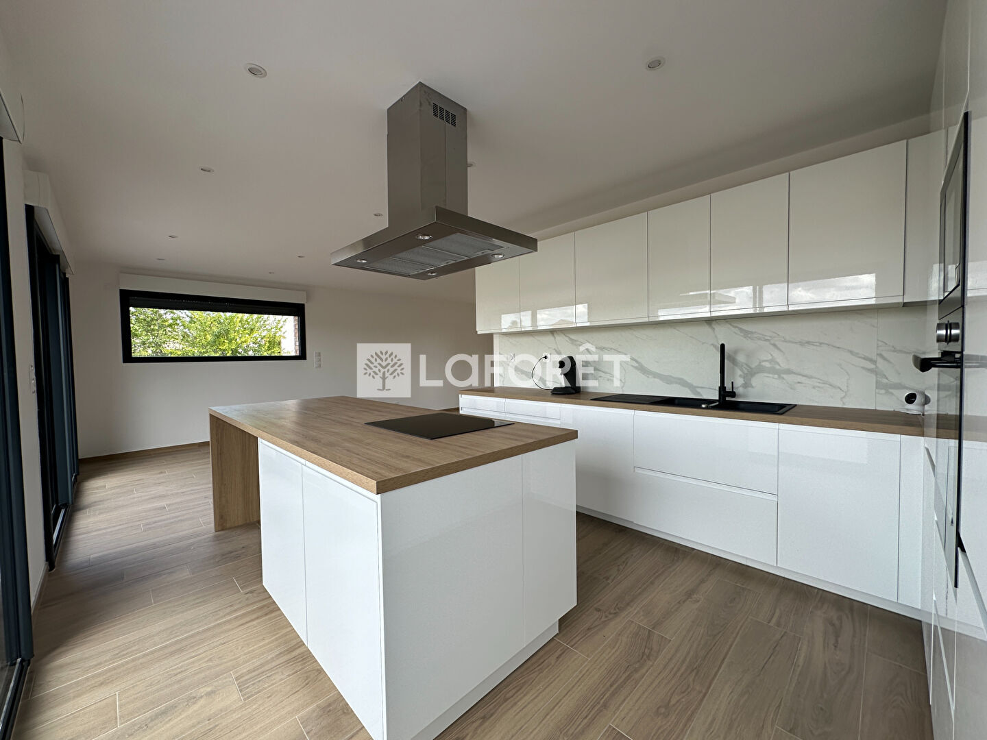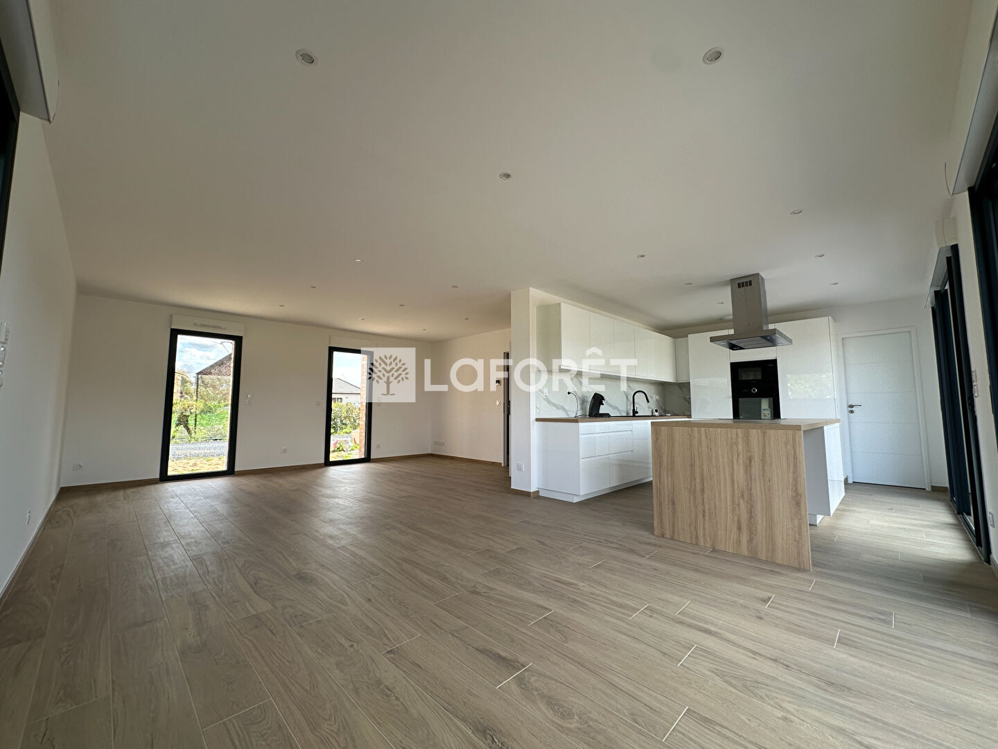 Elle vous offre au rez-de-chaussée, un hall d'entrée, une belle pièce de vie d'environ 48m² avec cuisine aménagée et équipée, une buanderie, un cellier et des wc.