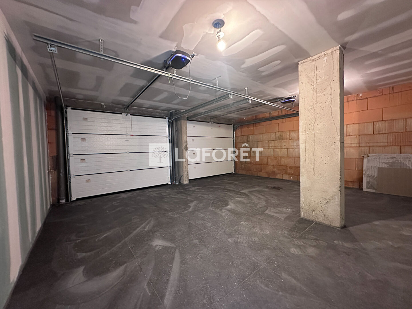 Côté extérieur, la maison dispose de deux garages avec portes motorisées, une terrasse et un jardin.