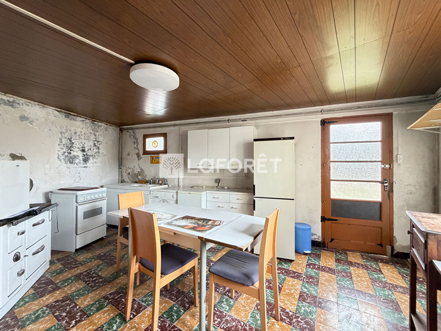 Elle vous offre un séjour d'environ 40m² ainsi qu'une grande cuisine à aménager selon vos envies, une partie buanderie, une salle de bains et des wc séparés.