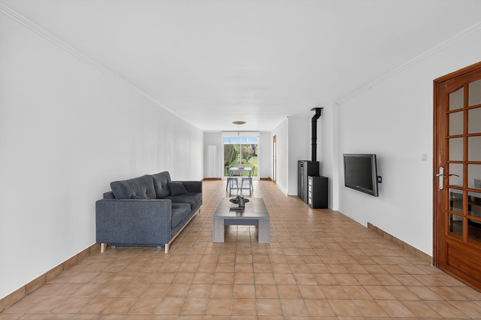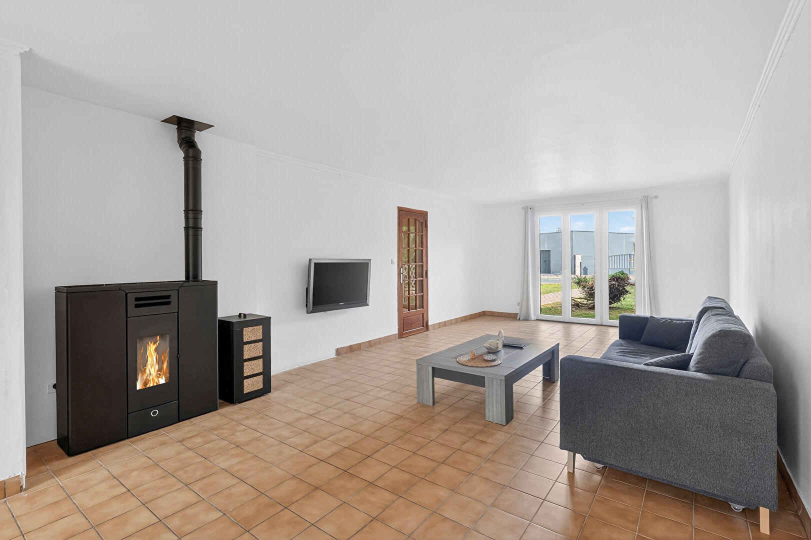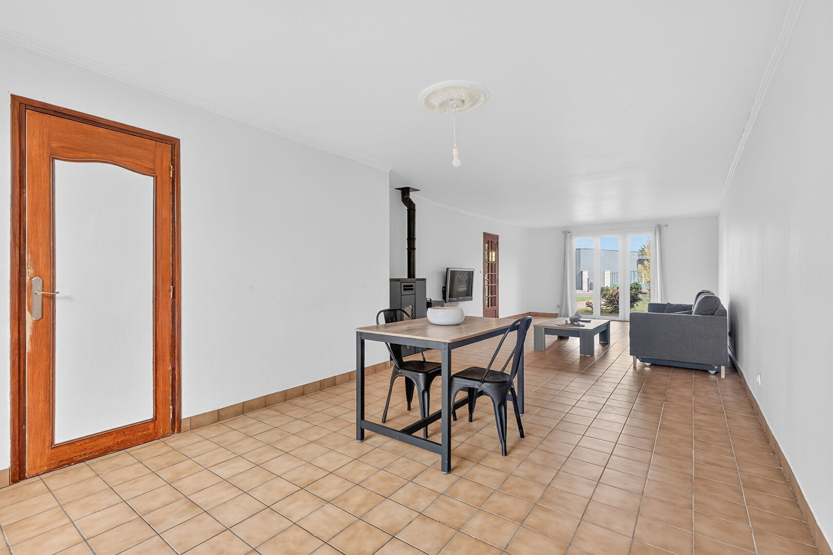 Maison traditionnelle des années 80, offrant hall d'entrée, séjour traversant lumineux avec poêle à granulés, cuisine équipée, salle de bains avec baignoire, 4 chambres et sous-sol avec garage.