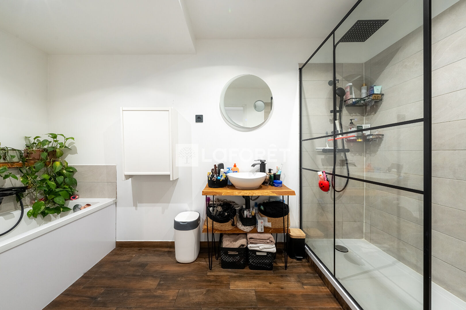 Le rez-de-chaussée vous offre une pièce de vie d'environ 30m², une cuisine aménagée et équipée moderne avec cellier, puis un couloir vous mène dans une salle de bains avec douche et baignoire, une buanderie et des WC séparés.