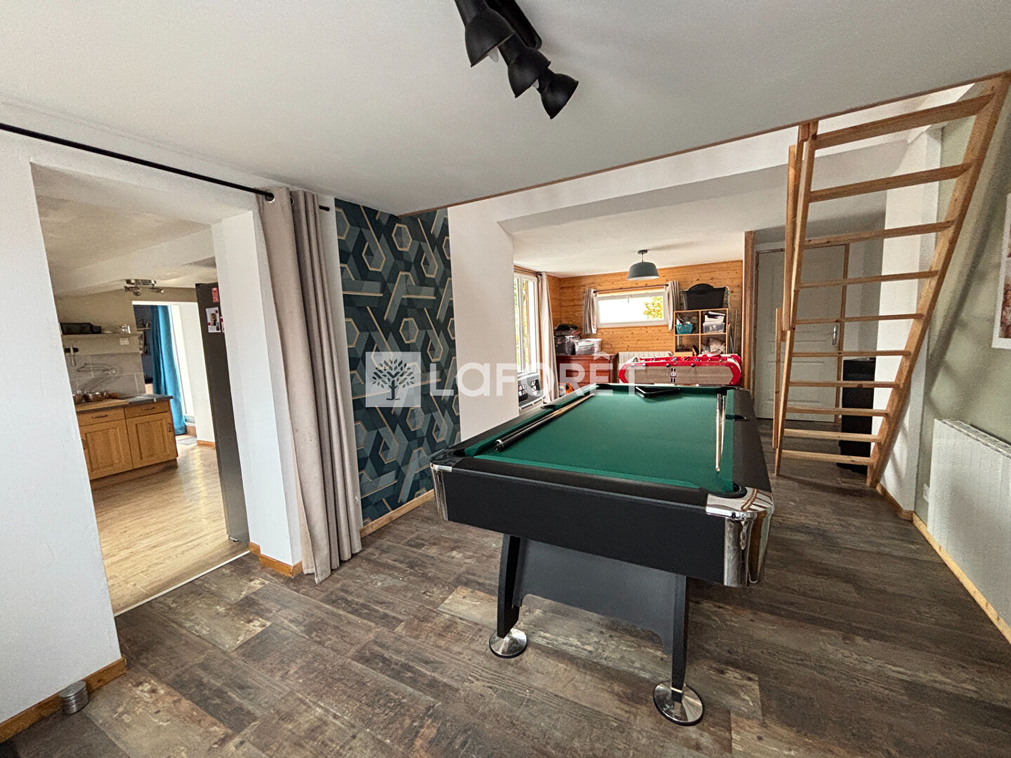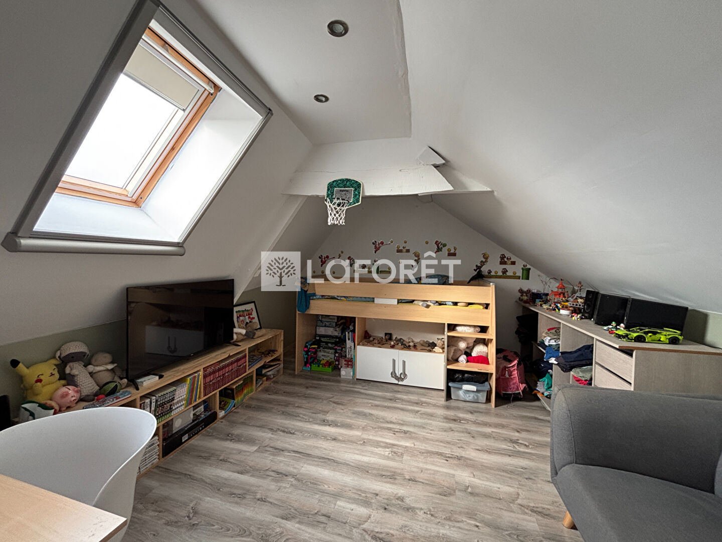 --> coté salle de jeux, la maison vous propose une grande chambre mezzanine et une pièce supplémentaire pouvant devenir une 4ème chambre.