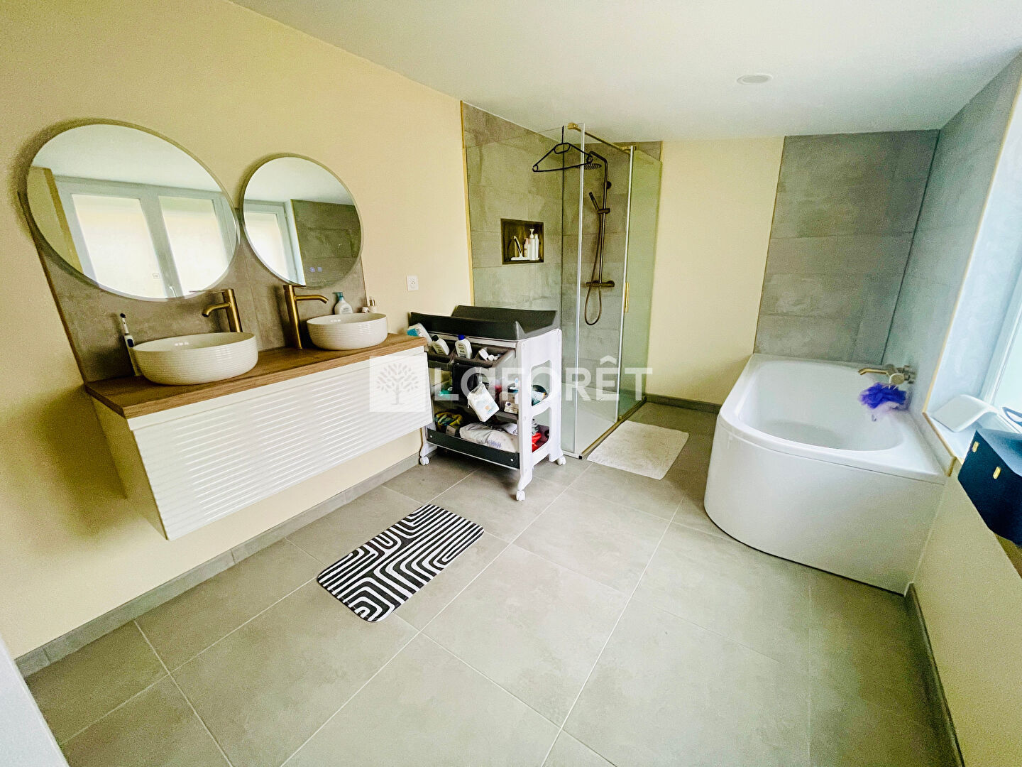 Vous pourrez profiter de son hall d'entrée, dressing, séjour lumineux avec son poêle à pellets, cuisine équipée, grande salle de bains avec baignoire et douche. Palier, 4 chambres dont une en dressing, buanderie, cave, terrasse, garage de 32 m², cour pour le stationnement et grand jardin.