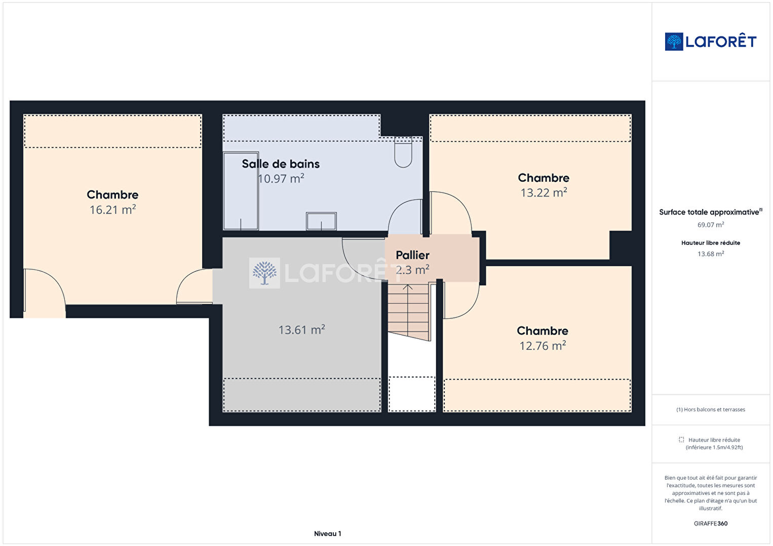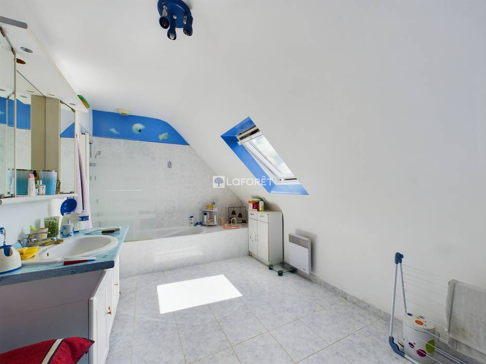 A l'étage : un palier desservant 4 belles chambres, une grande salle de bains avec WC.