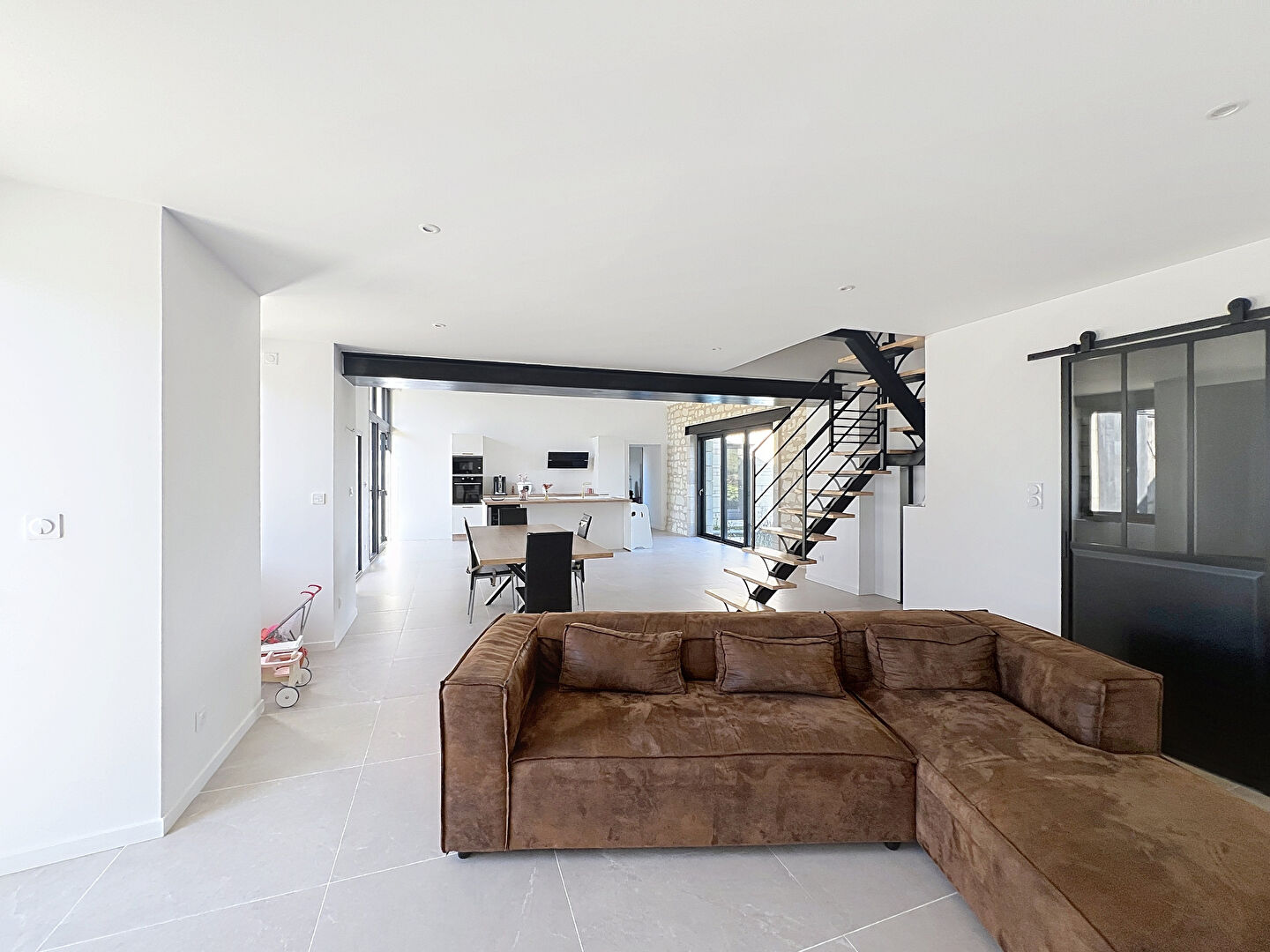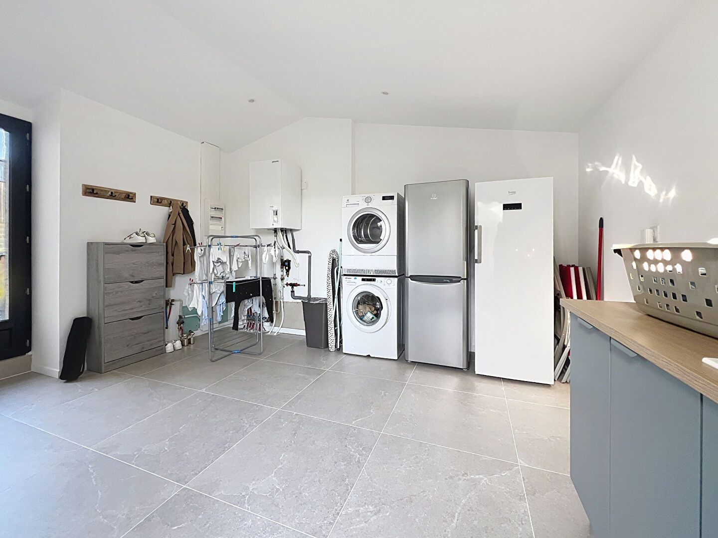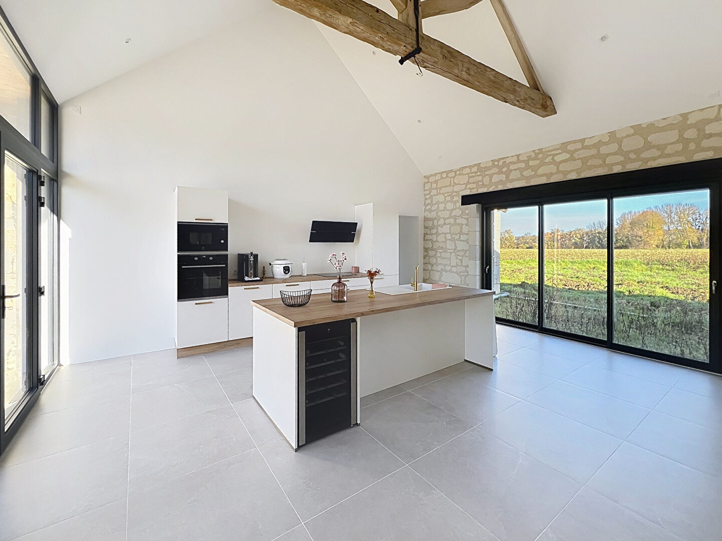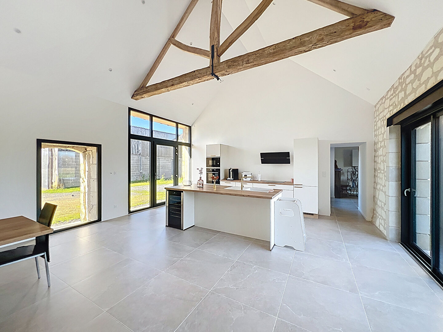 Au rez-de-chaussée, une vaste pièce de vie lumineuse comprend une cuisine ouverte équipée, un salon/salle à manger avec emplacement pour un poêle, une arrière-cuisine et une suite parentale avec dressing et salle d'eau.