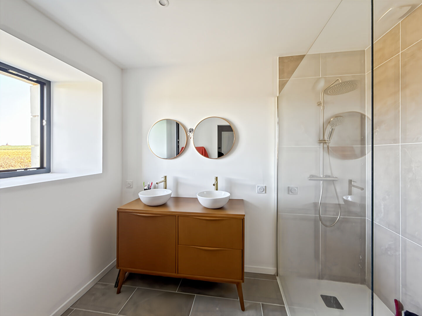 À l'étage, deux grandes chambres et une salle d'eau avec WC complètent l'ensemble.