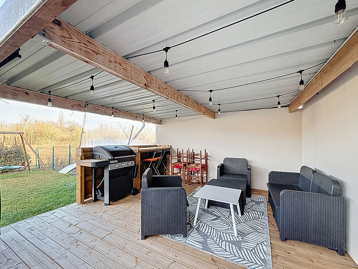 Un garage complète ce bien, ainsi qu'un terrain clos sans vis-à-vis, parfait pour profiter de l'extérieur en toute tranquillité. La terrasse en bois, conviviale et accueillante, sera idéale pour vos moments de détente ou repas en famille.