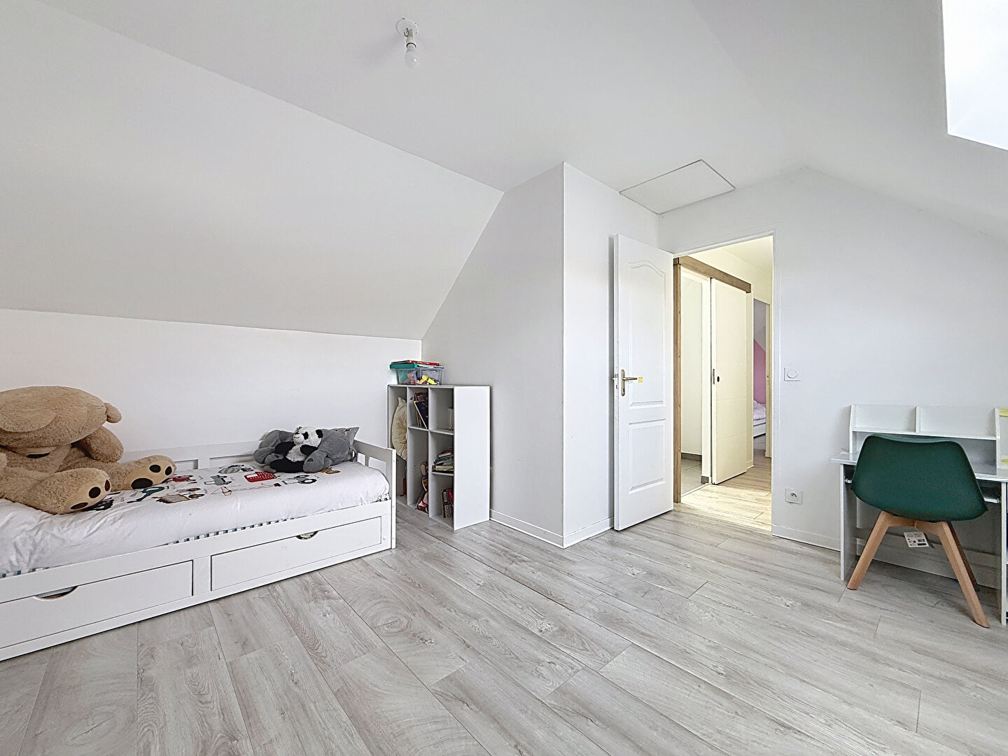 À l'étage, l'espace nuit se compose de deux chambres supplémentaires et d'une seconde salle d'eau.