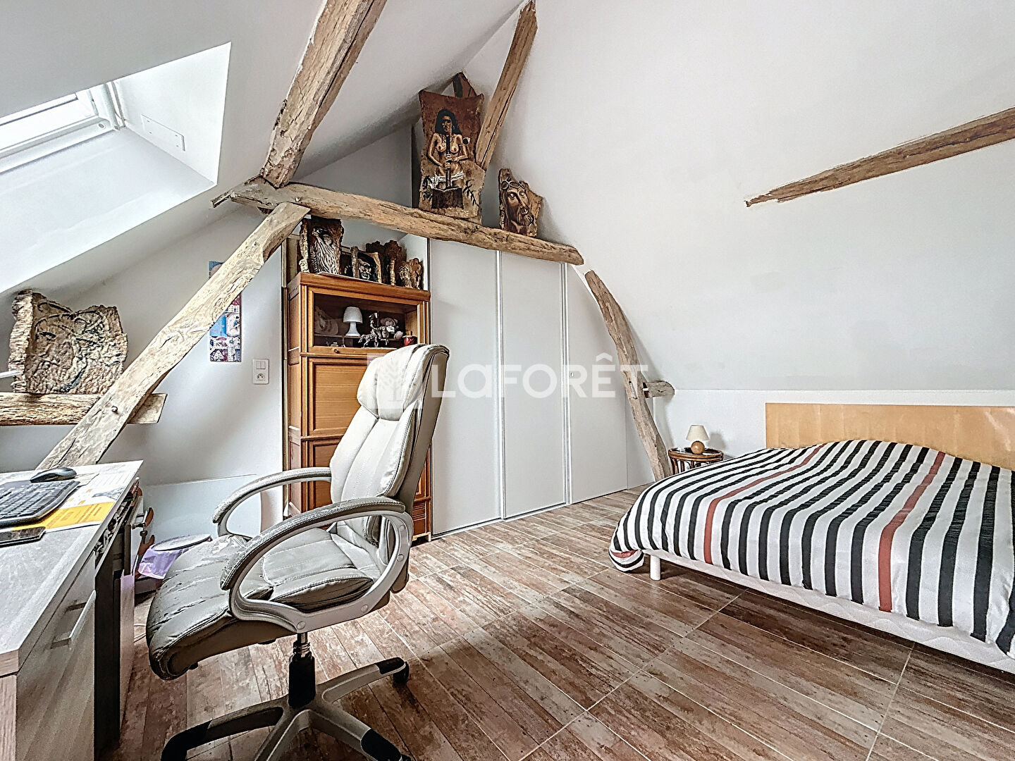 L'étage accueille plusieurs chambres avec placards, un palier pouvant faire office de bureau ou de chambre supplémentaire, ainsi qu'une salle de bain avec wc.