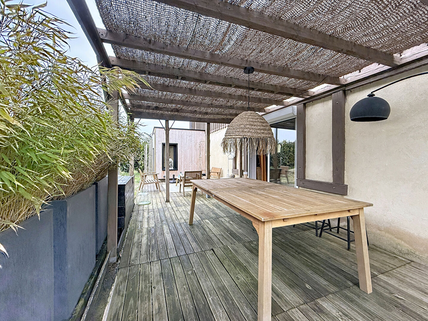 Le tout sur un terrain de 1000m² clôturé, une terrasse avec pergola et une piscine hors-sol.