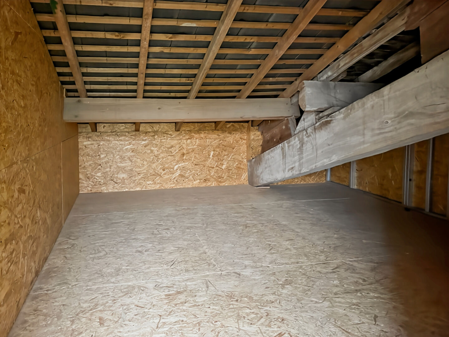 En plus de cet espace, vous bénéficierez d'un garage, d'un grenier, d'une place de stationnement privée et d'un jardin commun à partager avec les autres locataires.