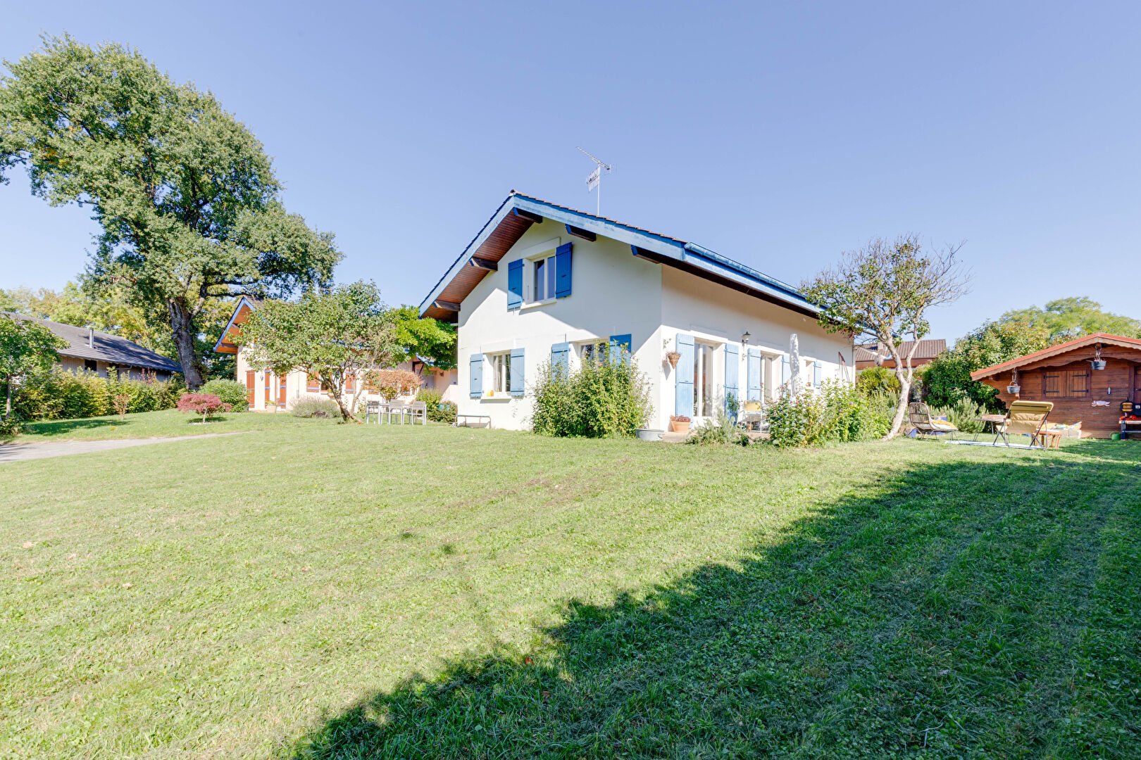 Côté jardin, deux belles terrasses exposées plein sud permettent de profiter pleinement des beaux jours, tandis qu'un abri de jardin apporte un espace de rangement pratique. L'ensemble du terrain, plat et piscinable, offre un cadre de vie agréable, idéal pour se détendre ou recevoir.