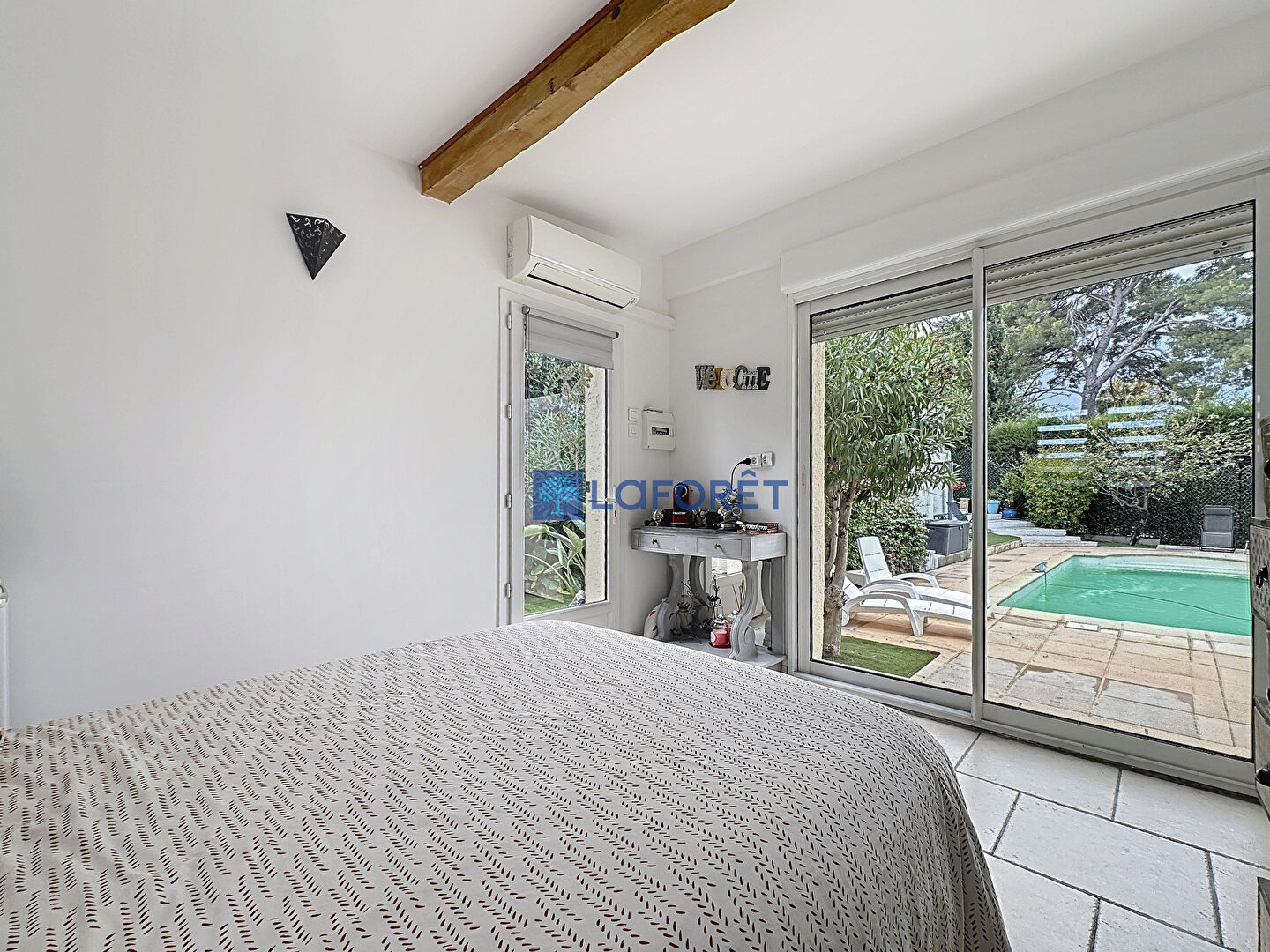 A cela s'ajoute une chambre indépendante avec salle d'eau et WC avec accès direct sur la piscine.