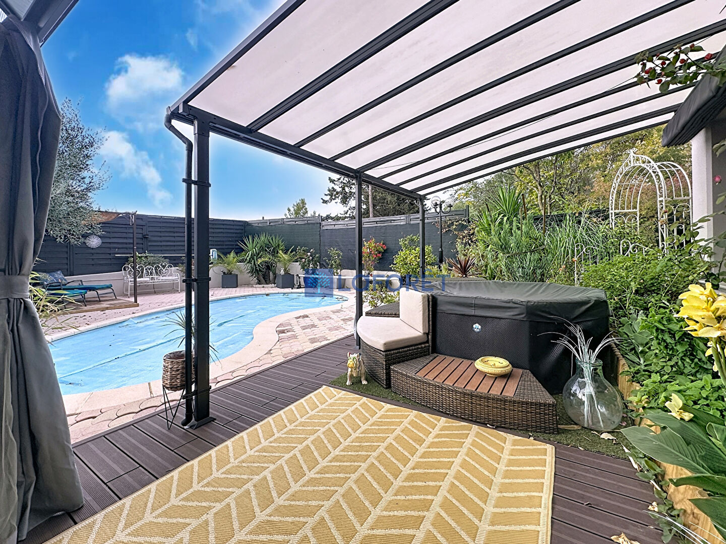À l'extérieur, le jardin en excellent état invite à la détente avec une piscine, parfaite pour les journées estivales. Les volets roulants électriques apportent un confort supplémentaire au quotidien.