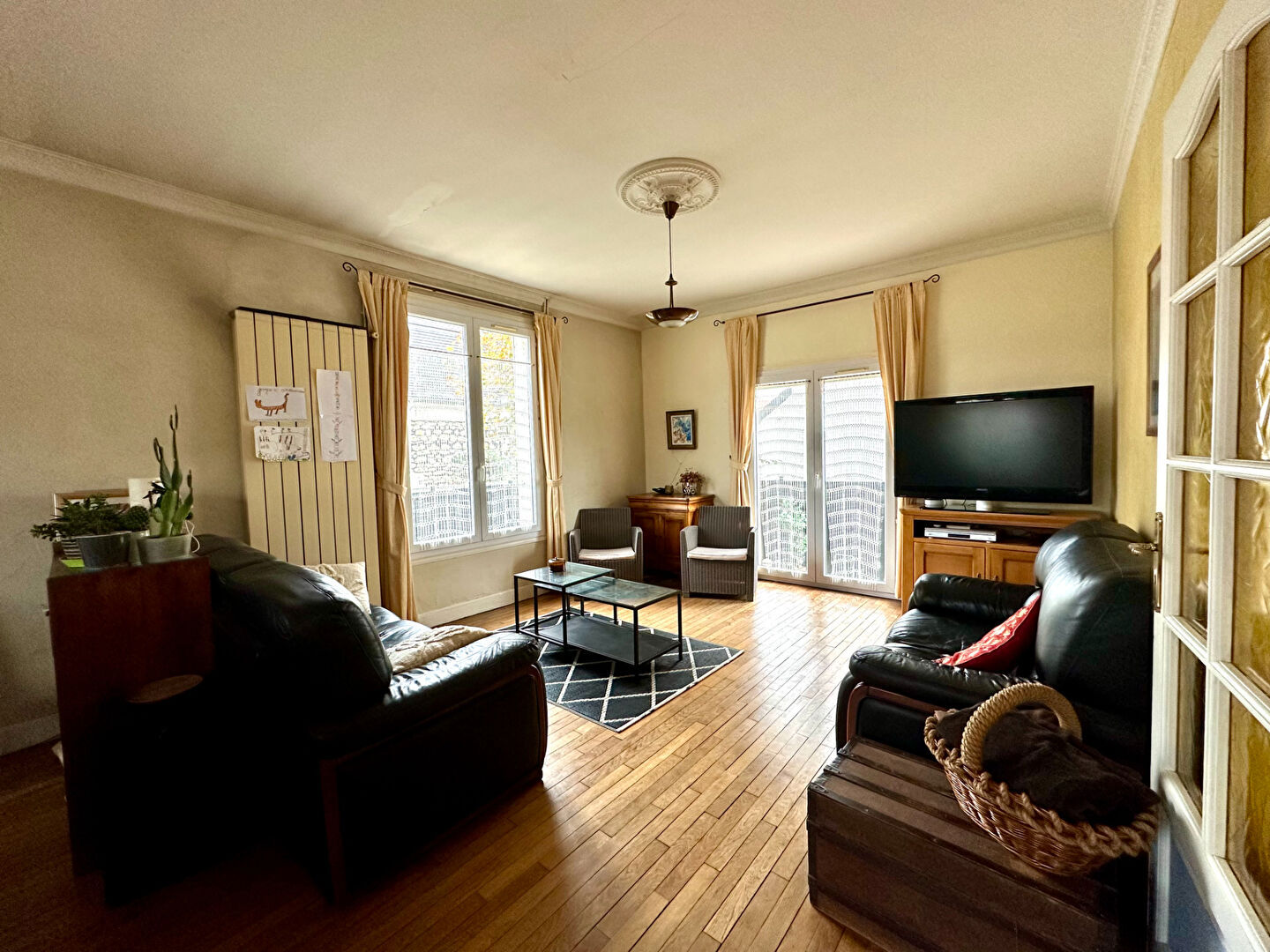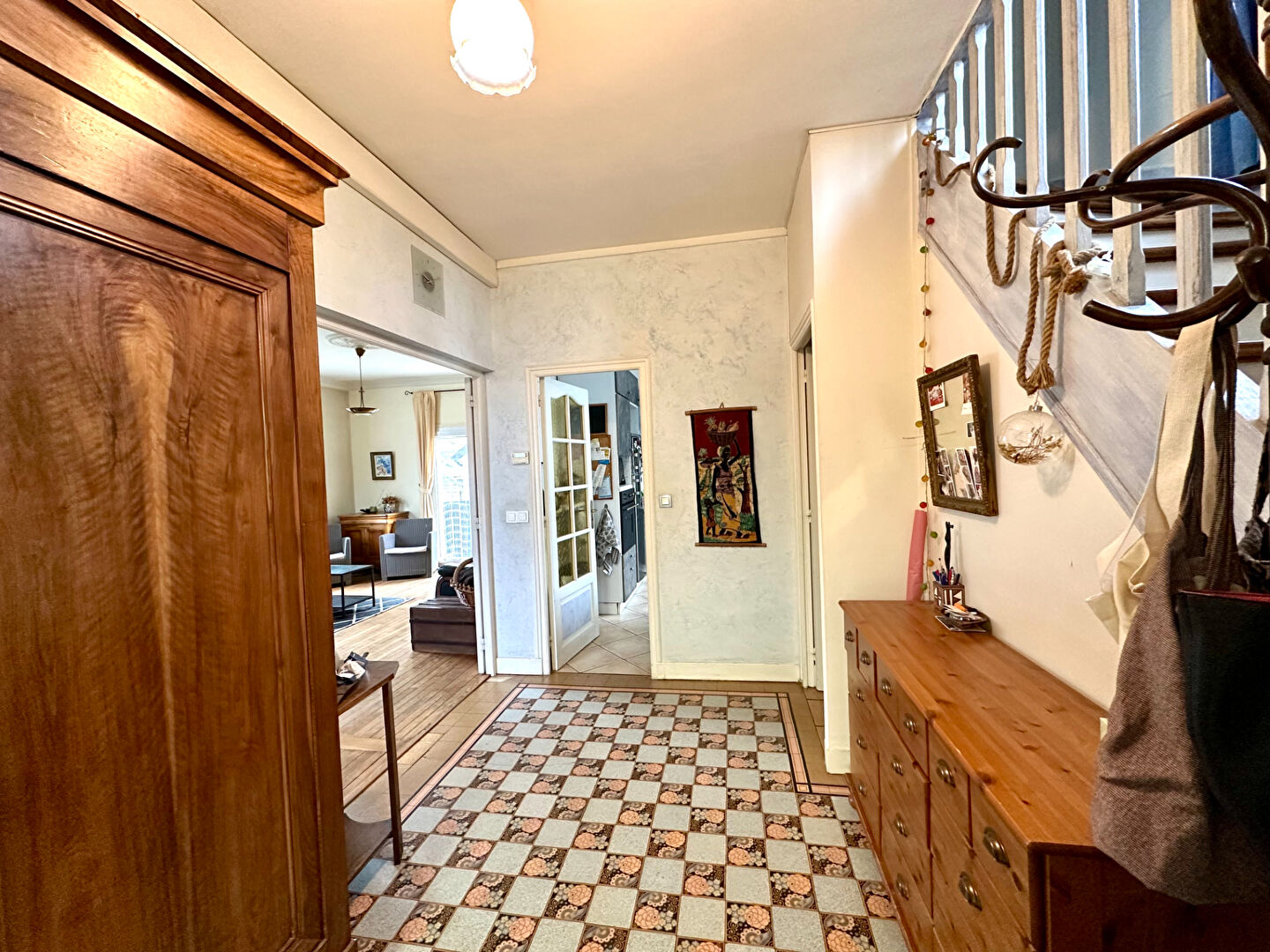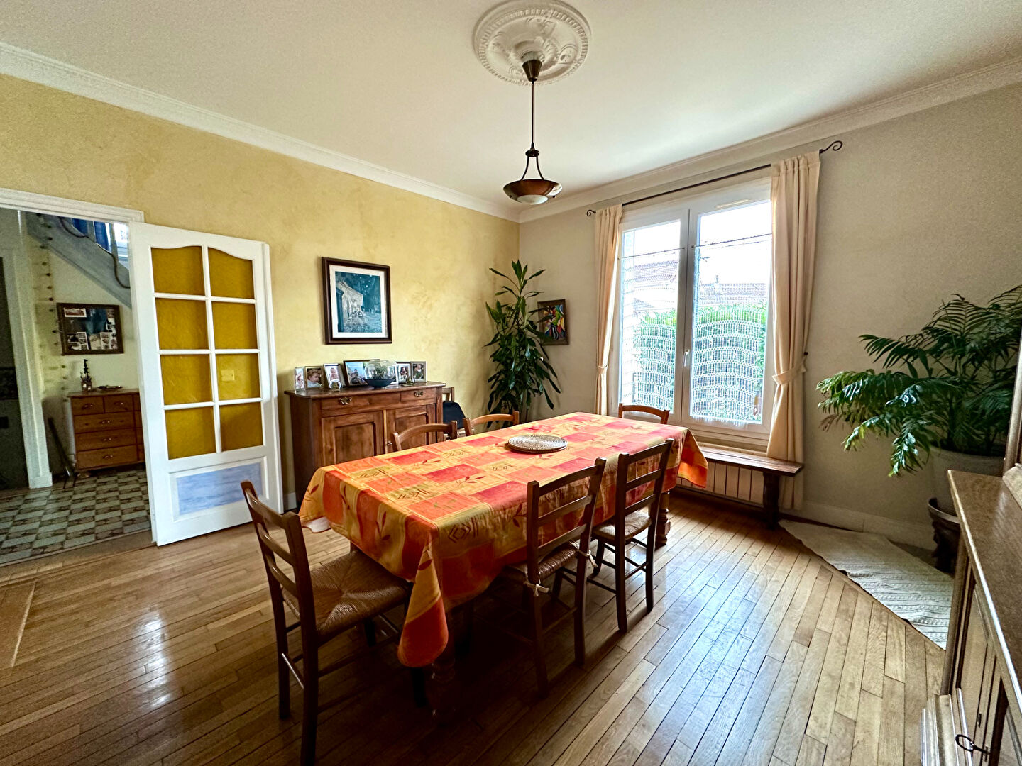 Au rez de chaussée, vous trouverez une belle entrée spacieuse plein de charme, un double séjour traversant ainsi qu'une cuisine.