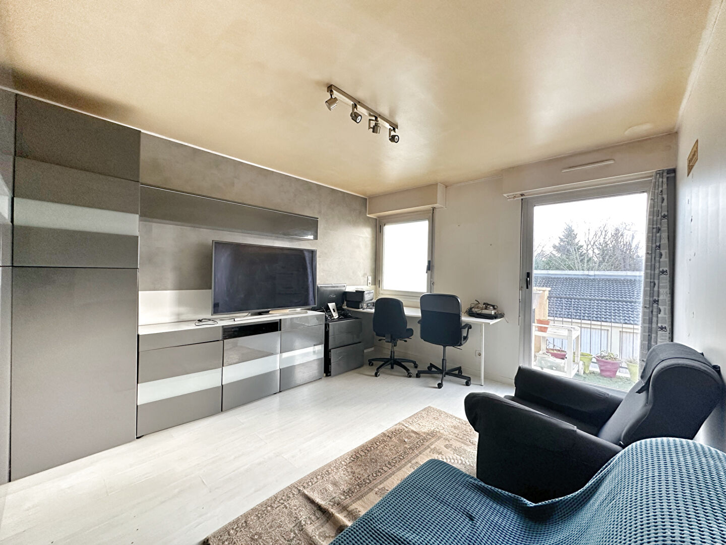 Il comprend une entrée, un séjour double avec accès au balcon exposée ouest, une cuisine indépendante aménagée équipée (possibilité d'ouvrir).