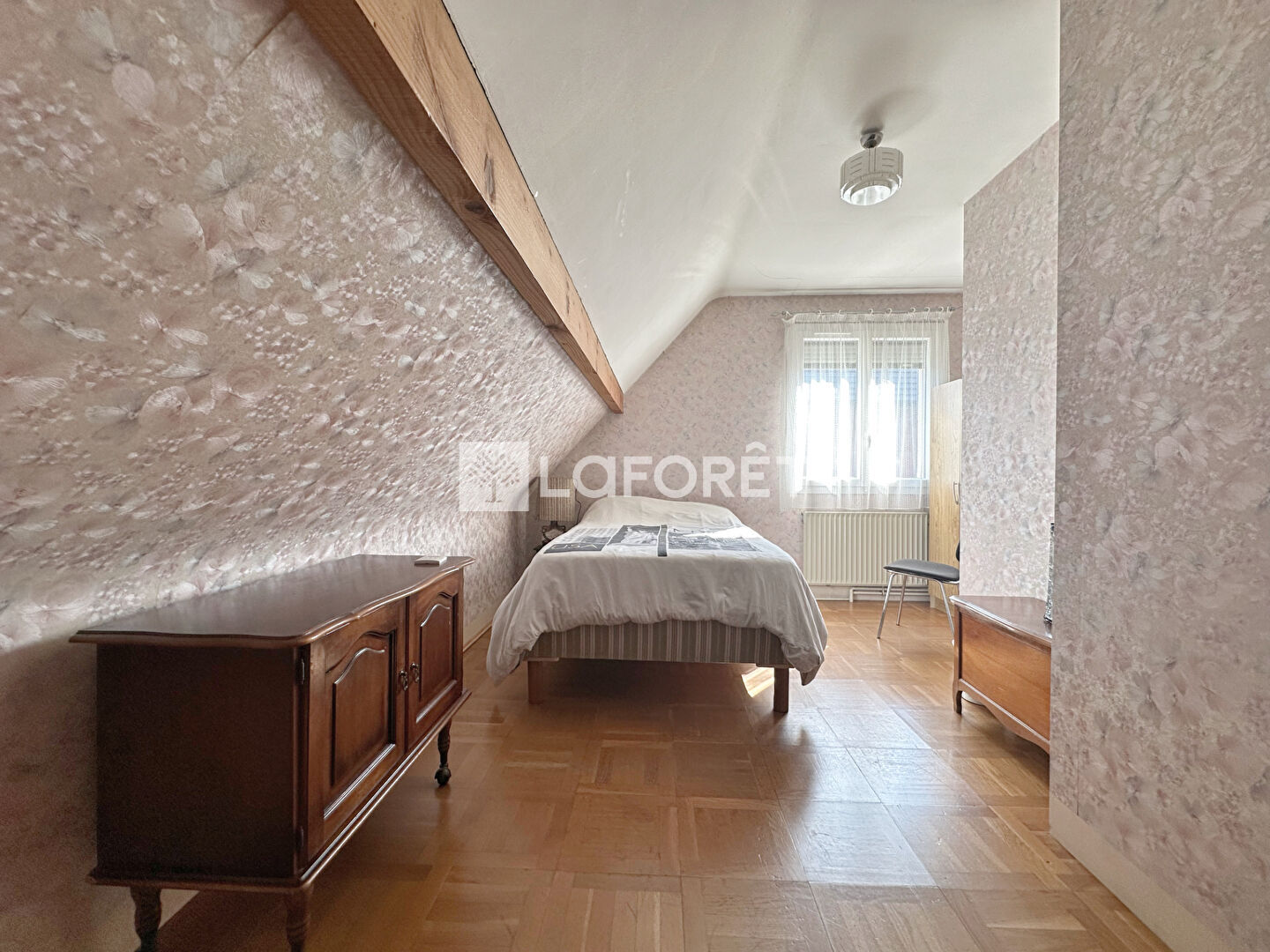 A l'étage le palier dessert 3 belles chambres, une salle de bain avec wc et un accès à des combles aménageables.