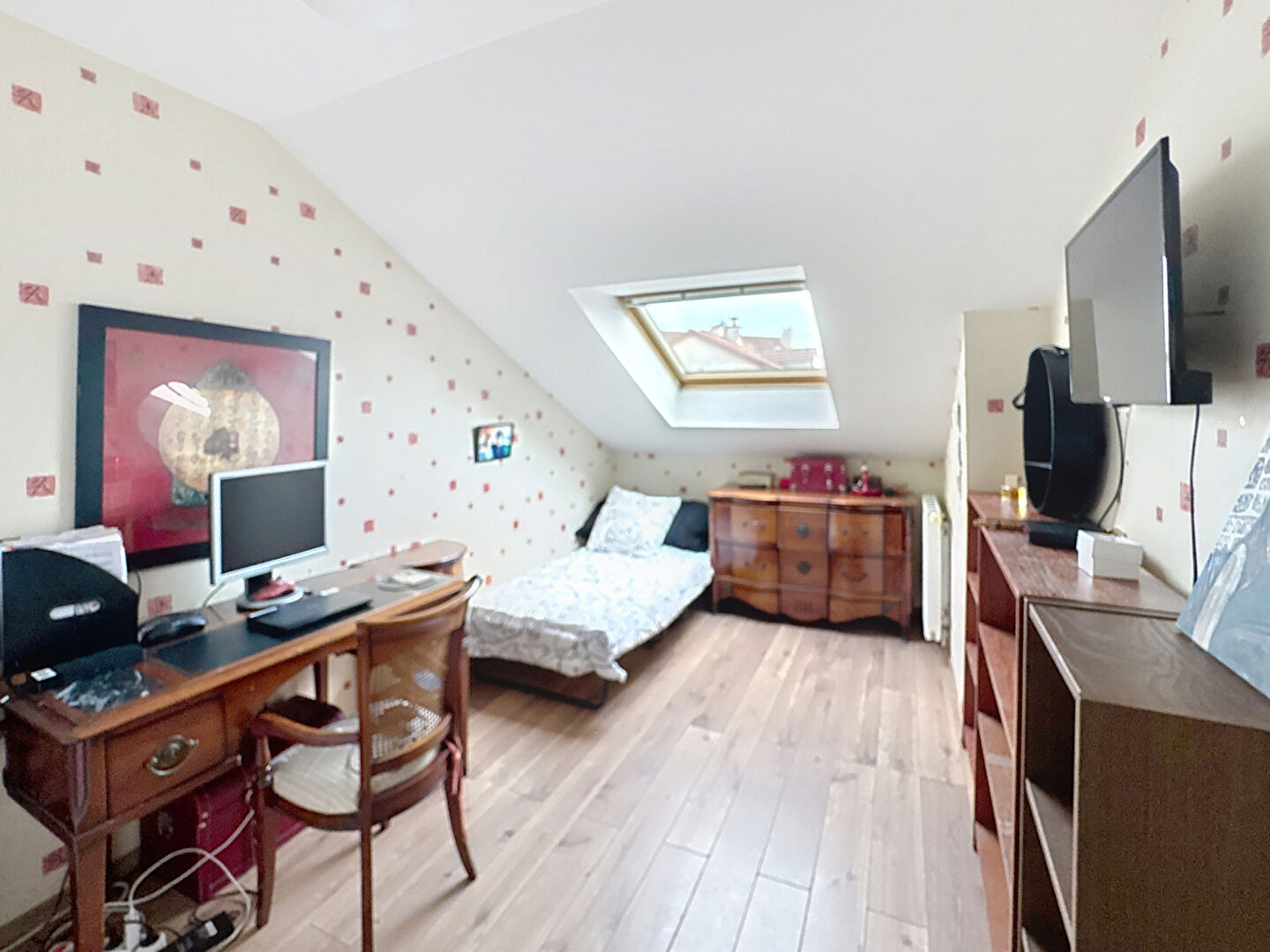 À l'étage, l'espace nuit se compose de 4 chambres et d'une salle d'eau, idéal pour une famille.