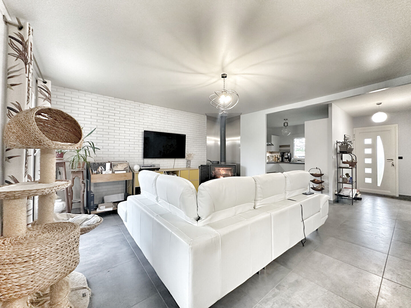 Au rez-de-chaussée, une entrée mène à une lumineuse pièce de vie de 35 m², chaleureuse grâce à sa cheminée insert. La cuisine semi-ouverte, aménagée et équipée, allie confort et convivialité. Trois chambres ainsi qu'une salle d'eau complètent ce niveau.
