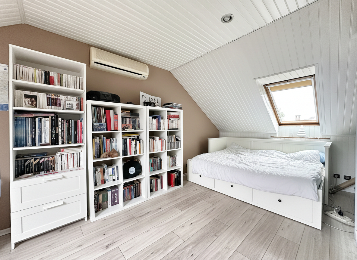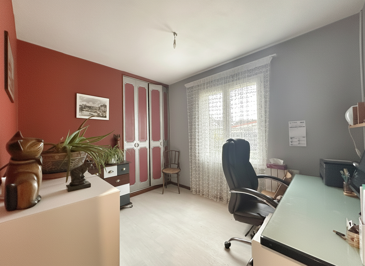 À l'étage, vous trouverez une chambre supplémentaire, une salle d'eau avec WC, ainsi qu'une grande pièce polyvalente pouvant servir de chambre, bureau, salle de jeux ou espace de loisirs selon vos besoins.