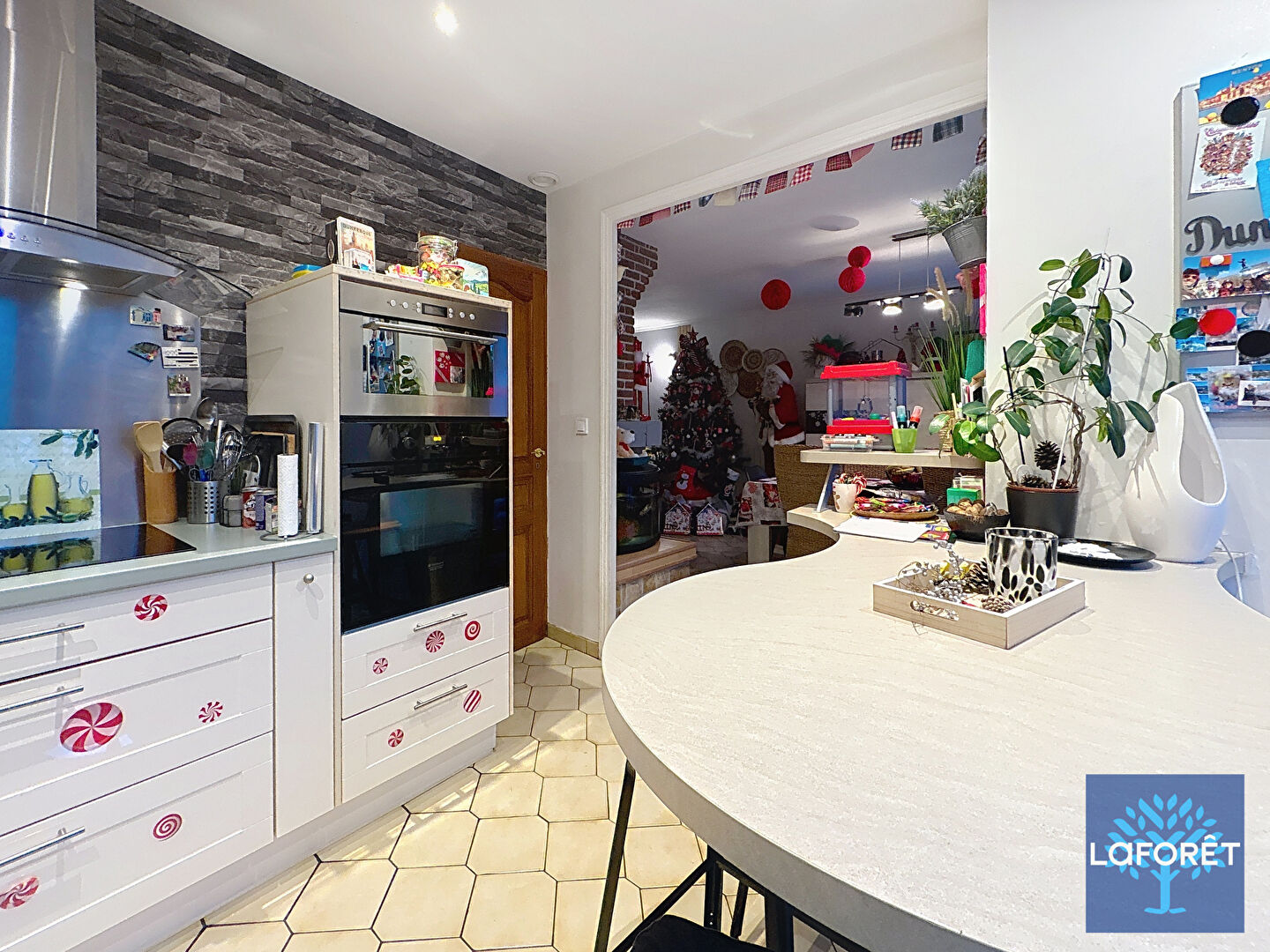Une entrée, wc, un salon/séjour de 31 m2 avec cheminée feu de bois, une cuisine ouverte aménagée et équipée donnant acces à une terrasse de 22m2, un cellier de 11 m2.