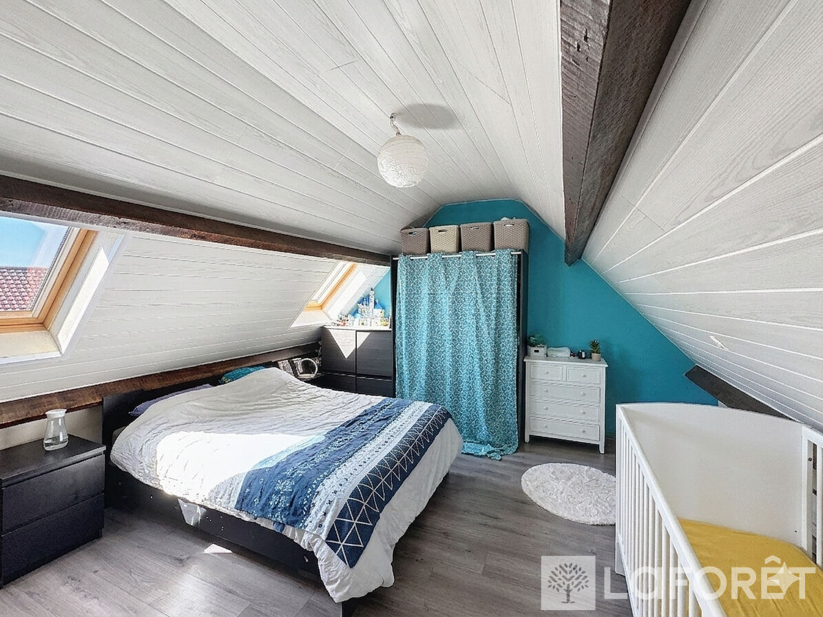 À l'étage, l'espace nuit propose deux chambres confortables (11 m² et 13 m²). Les combles au second niveau ont été aménagés pour offrir une belle troisième chambre de 18 m² au sol, un espace cosy plein de charme. Enfin, un jardin vient compléter ce cocon familial pour profiter des beaux jours. Une exclusivité à visiter sans tarder !