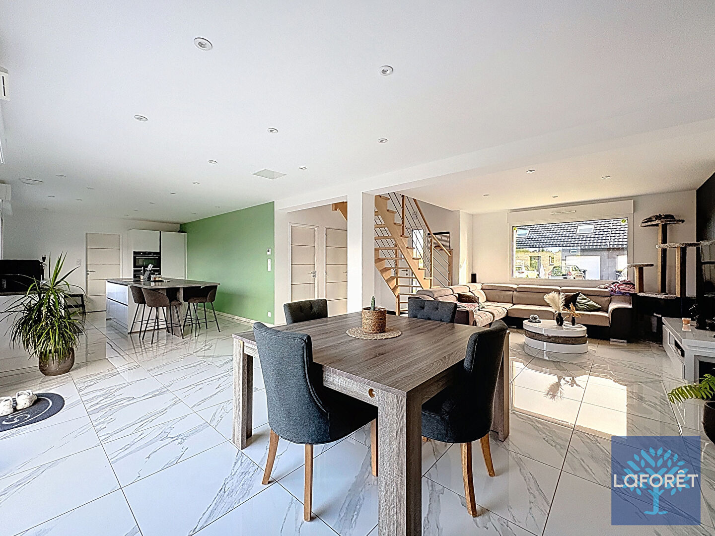 Il est composé au rez de chaussée d'une vaste pièce de vie de 56m2 avec une cuisine ouverte et moderne, un coin buanderie, une suite parentale avec son coin douche, un garage et un wc séparé.